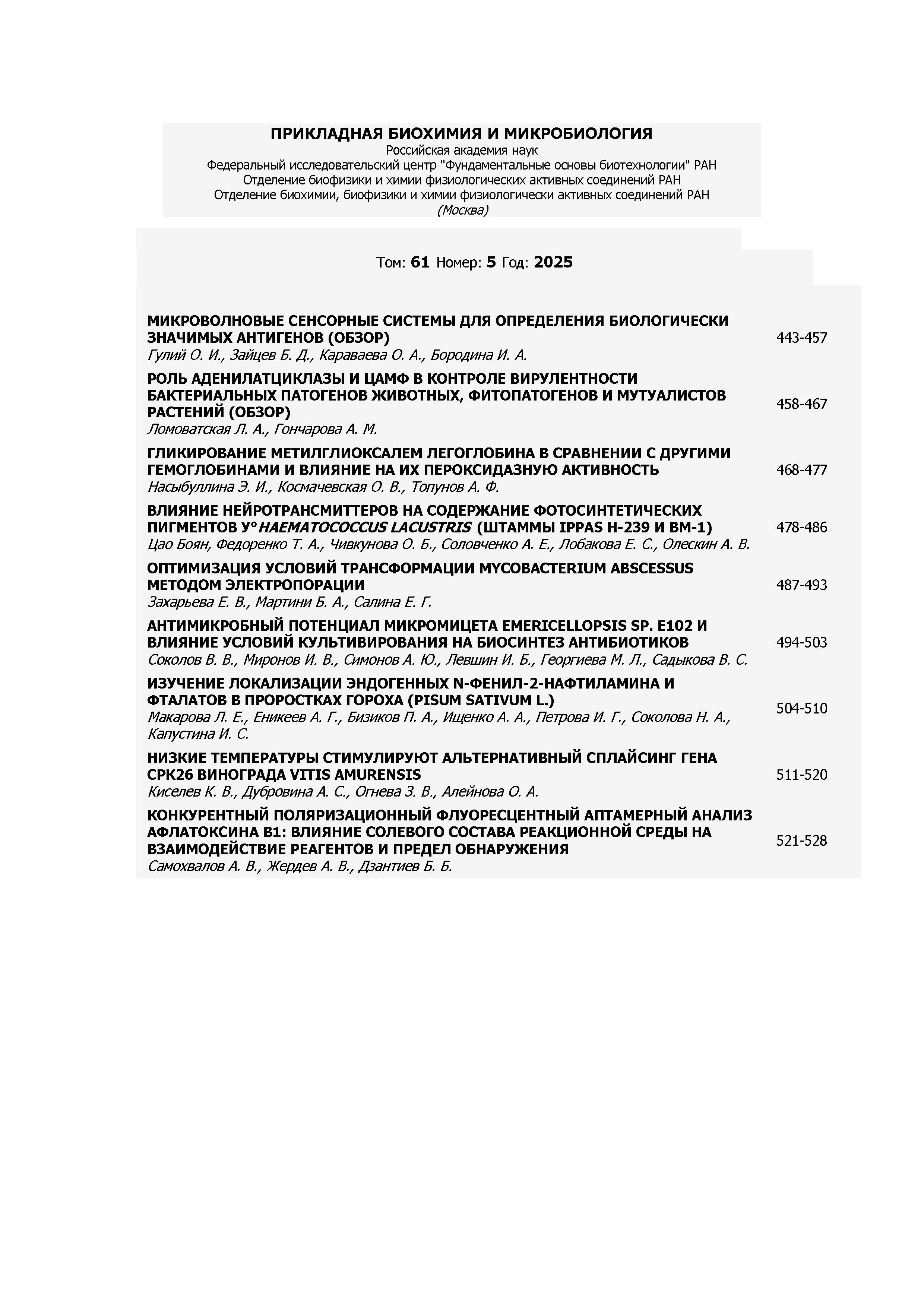 Прикладная биохимия и микробиология 2025 Т.61 N 5 |