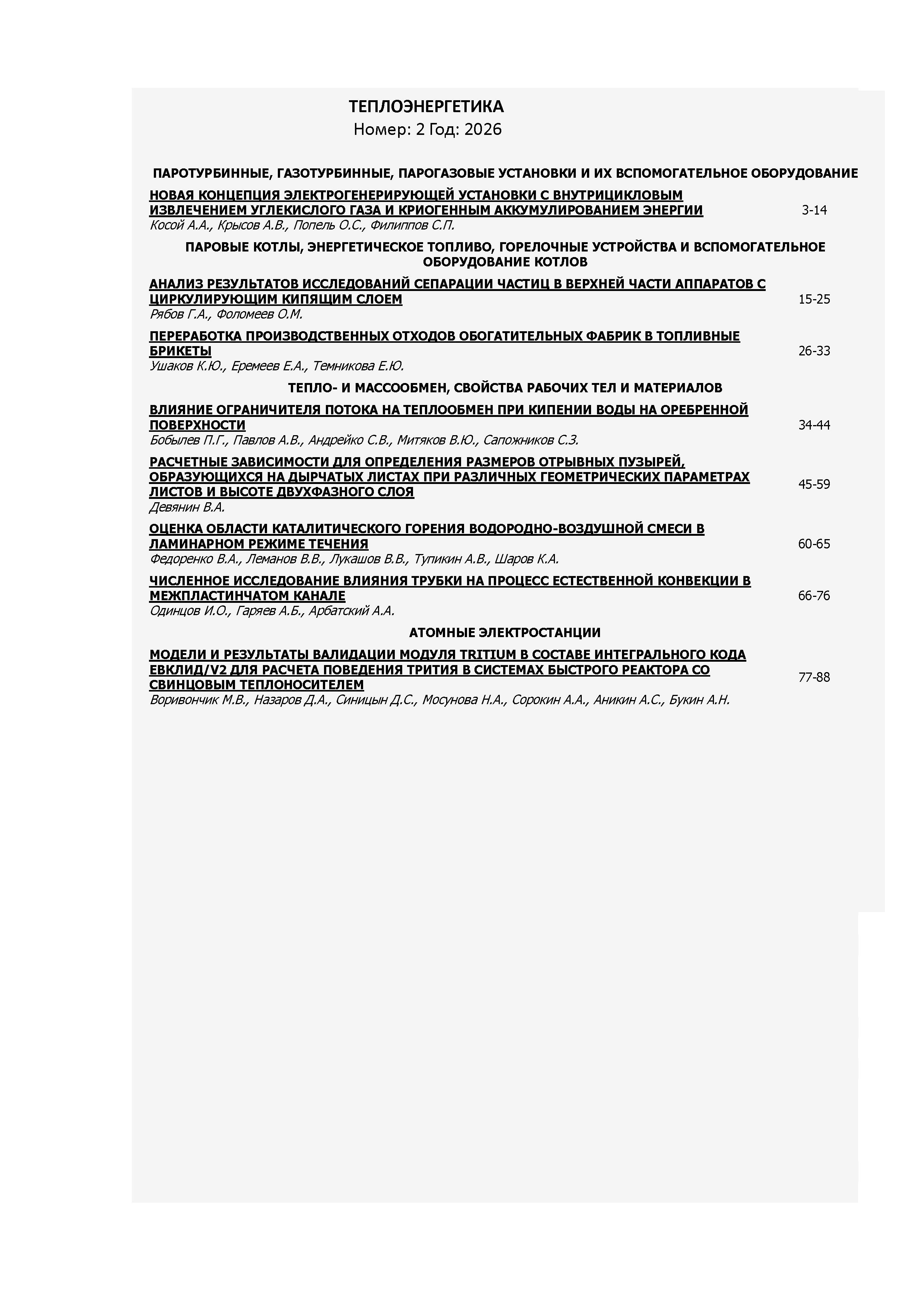 Теплоэнергетика 2026 №2 | Теплоэнергетика 2026 №2 | 2026 | 2 |
