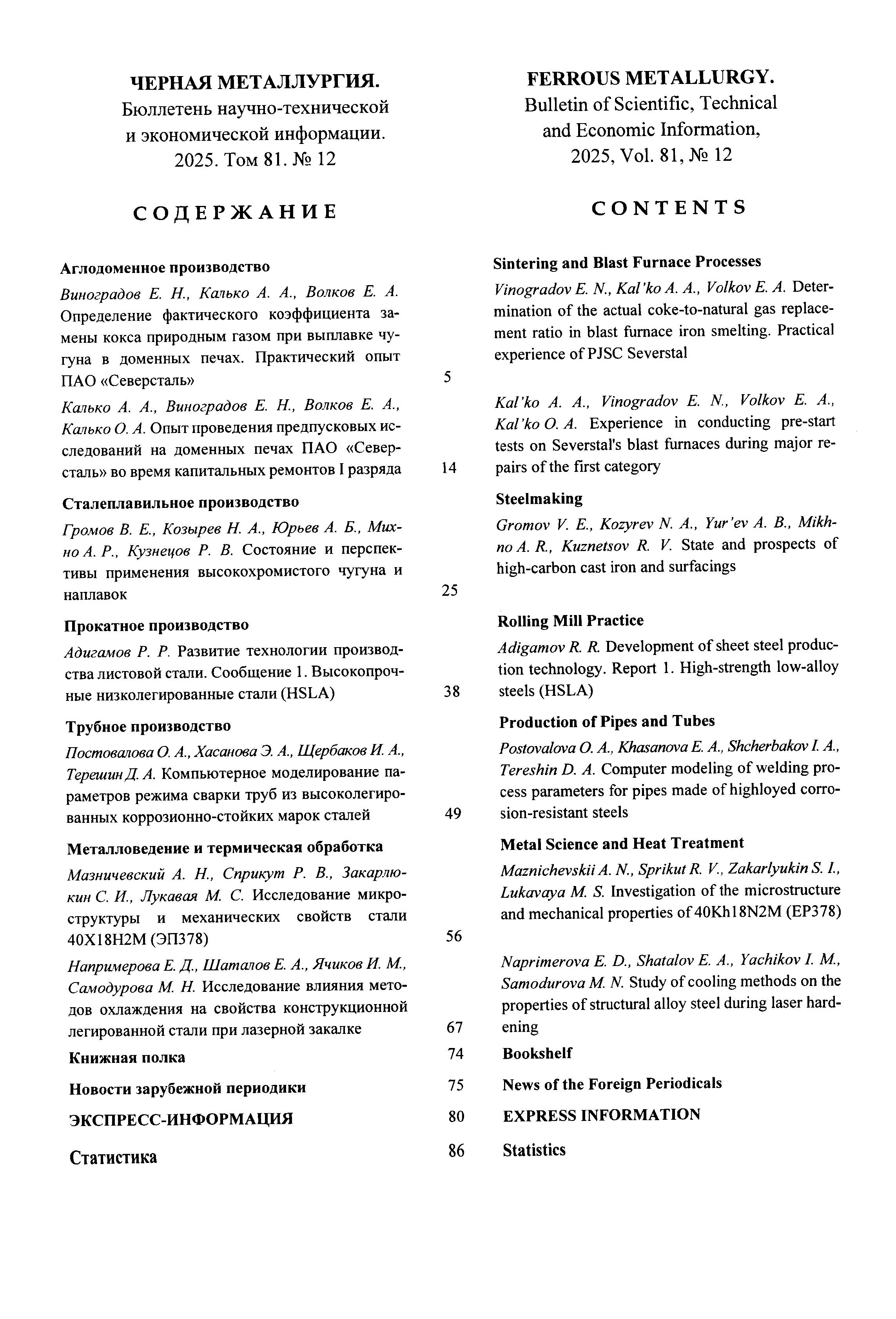 Черная металлургия. Бюллетень 2025 Т. 81 № 12 | Черная металлургия. Бюллетень 2025 Т. 81 № 12 | 2025 | 12 |