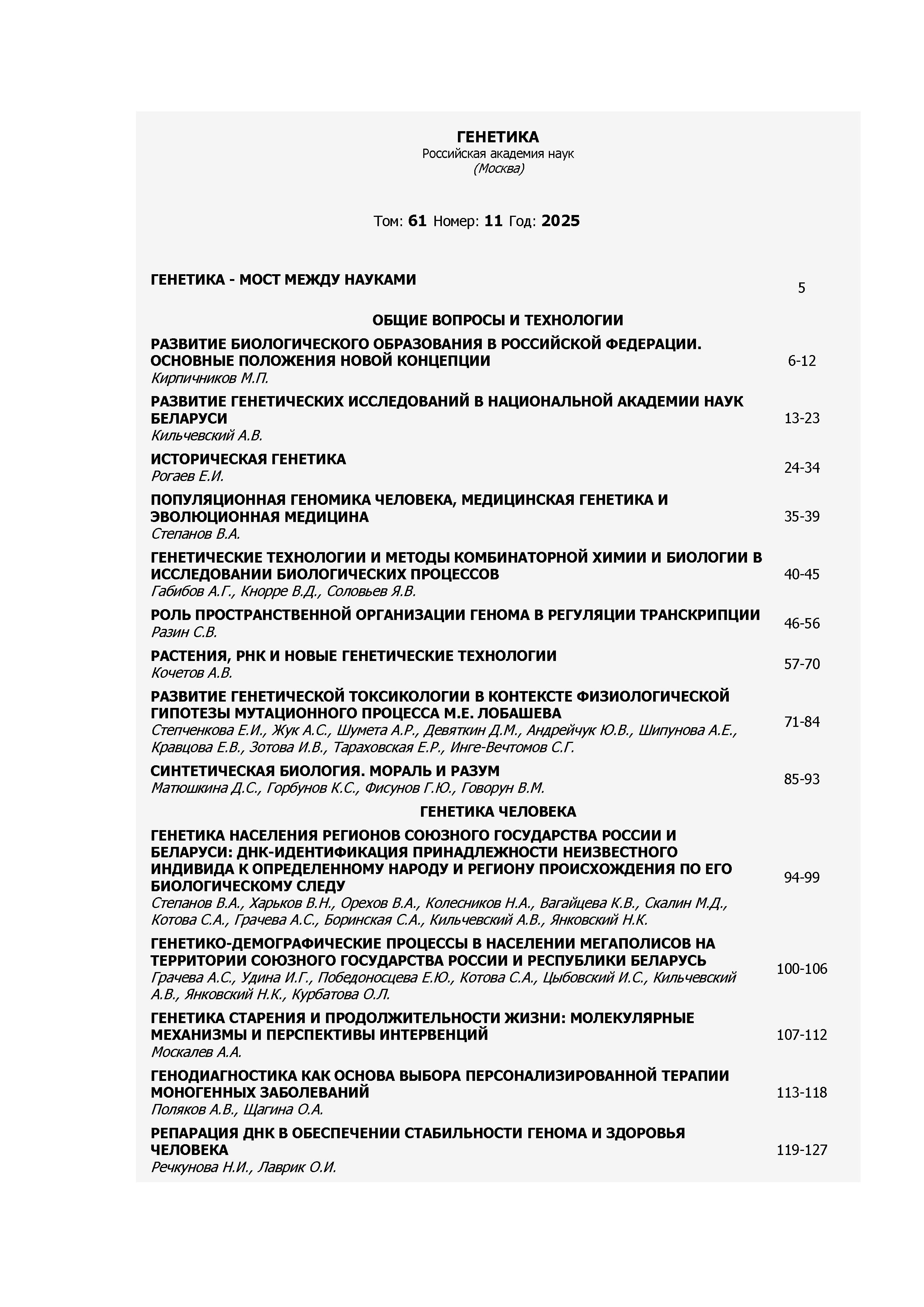 Генетика 2025 N11 | Генетика 2025 N11 | 2025 | 11 |