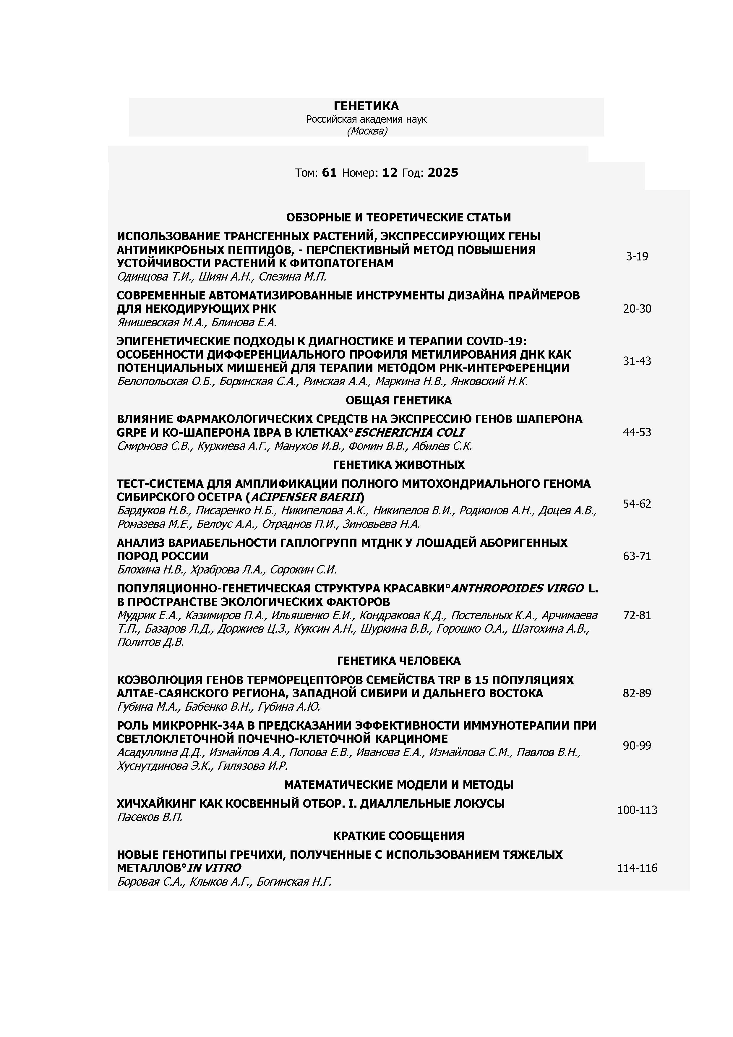 Генетика 2025 N12 | Генетика 2025 N12 | 2025 | 12 |