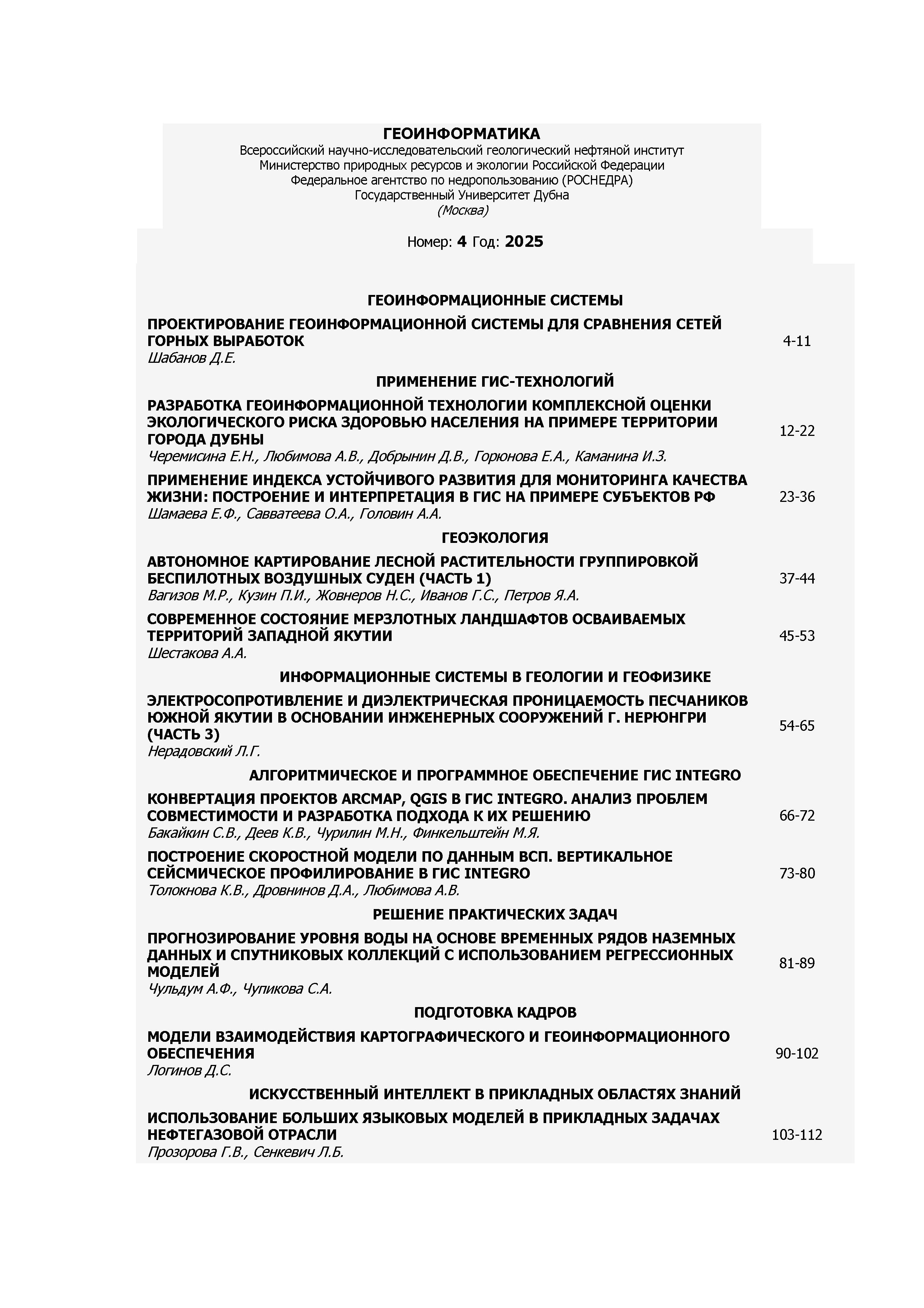 Геоинформатика 2025 N 4 | Геоинформатика 2025 N 4 | 2025 | 4 |