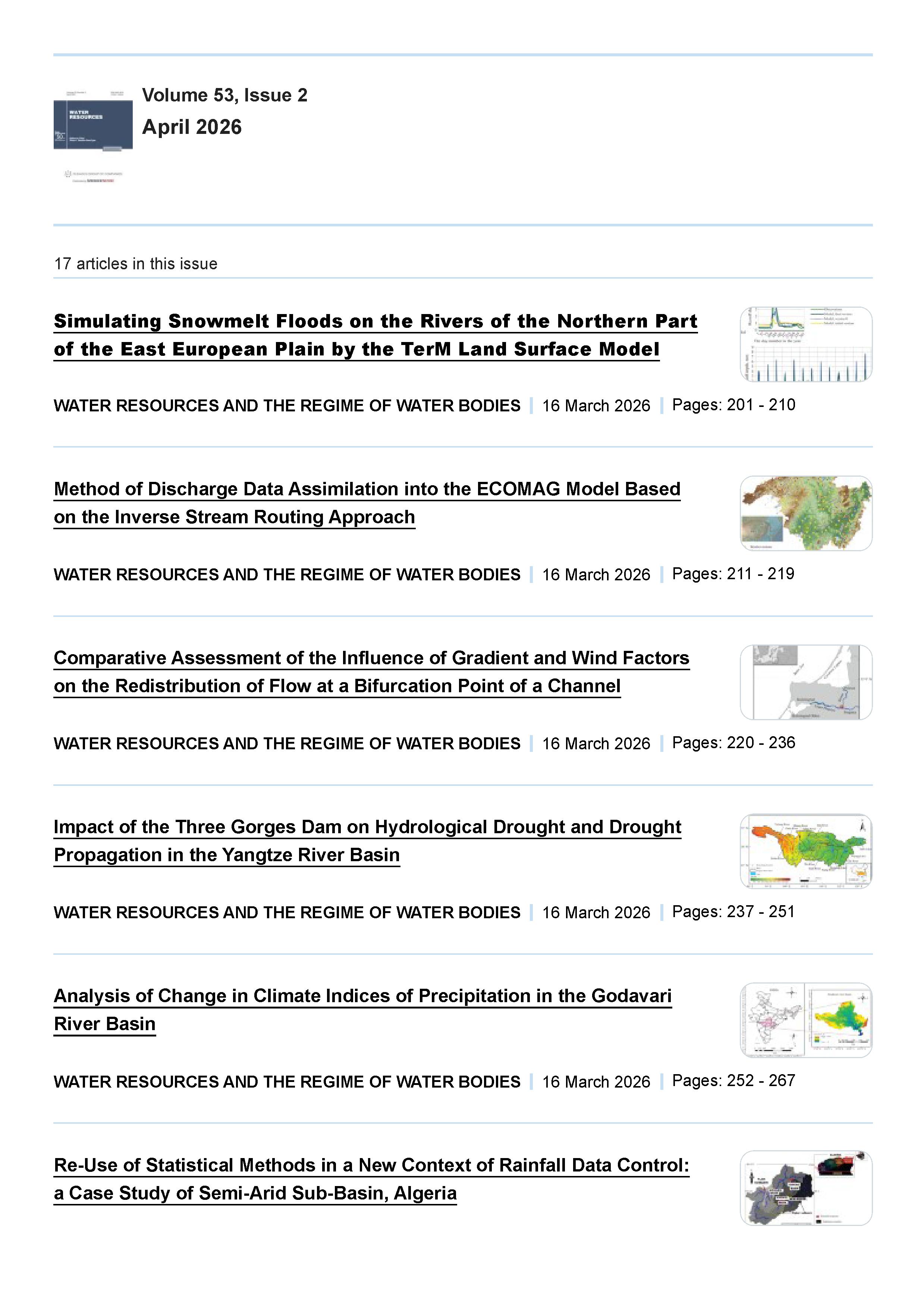 Water Resources 2026 Vol. 53 № 2 |
