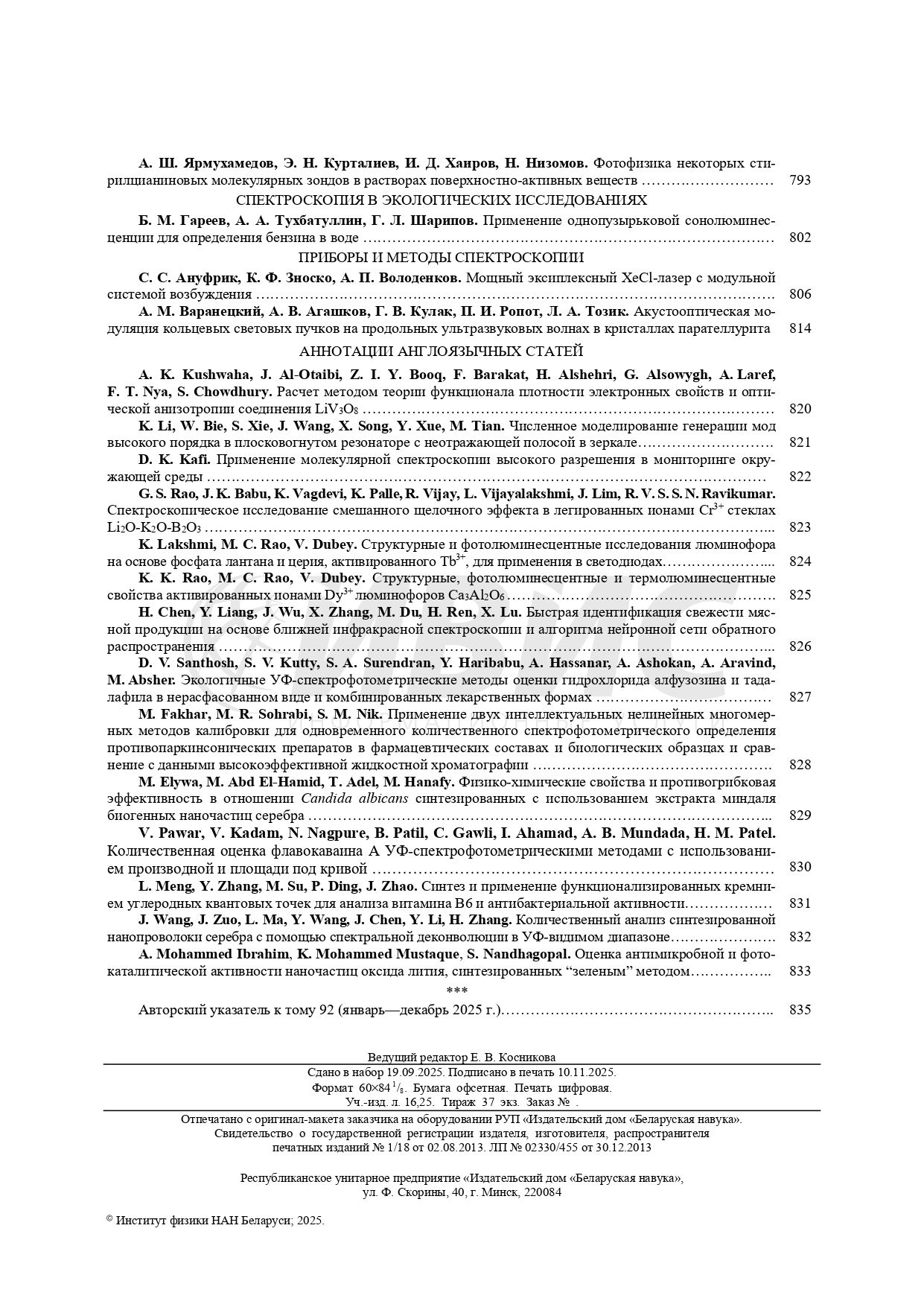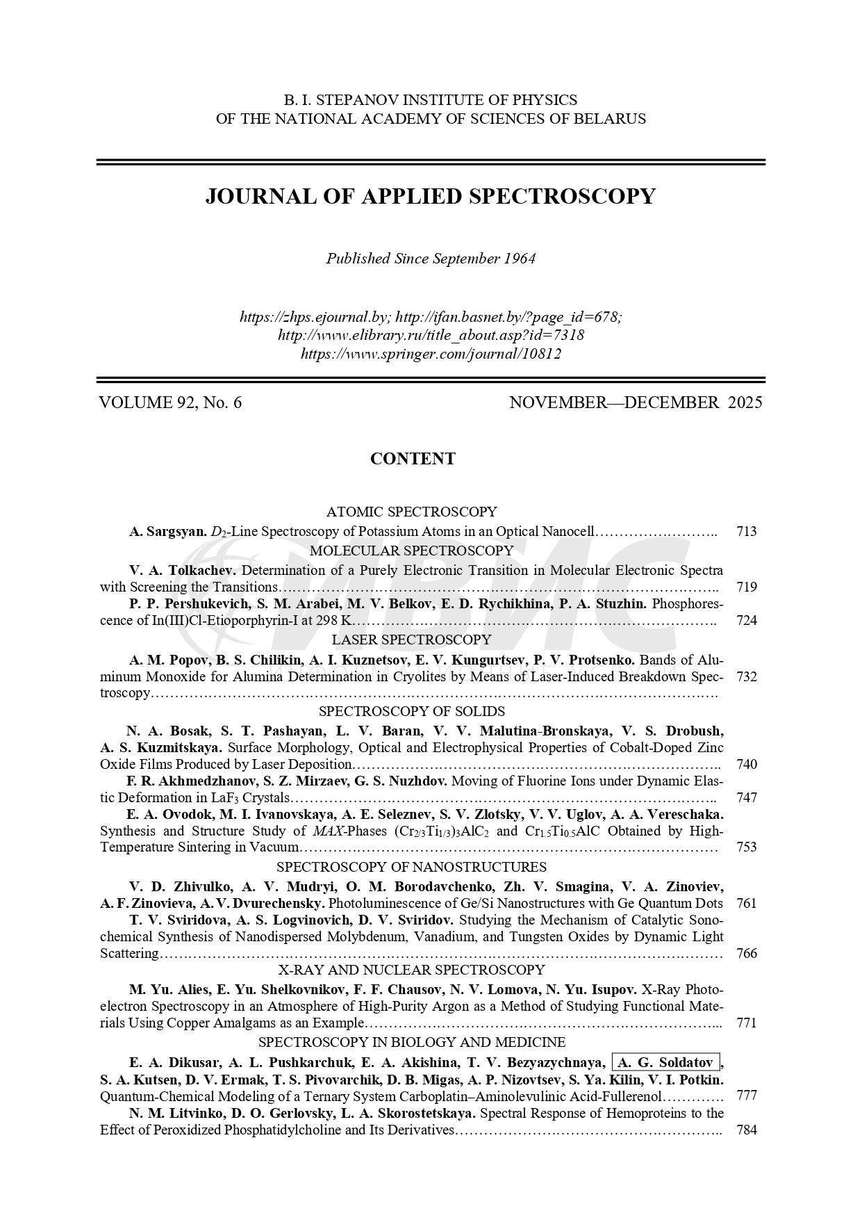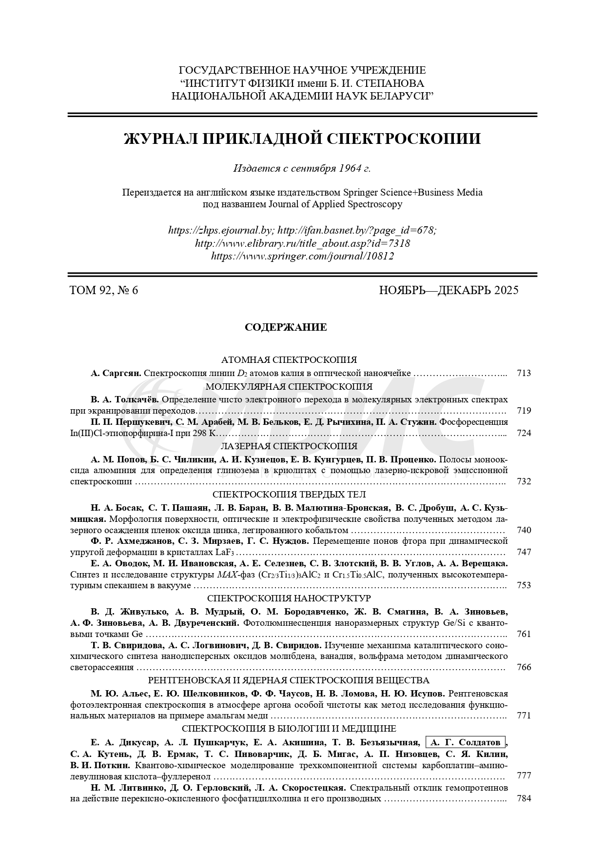 Журнал прикладной спектроскопии 2025 Т.92 № 6 | Журнал прикладной спектроскопии 2025 Т.92 № 6 | 2025 | 6 |