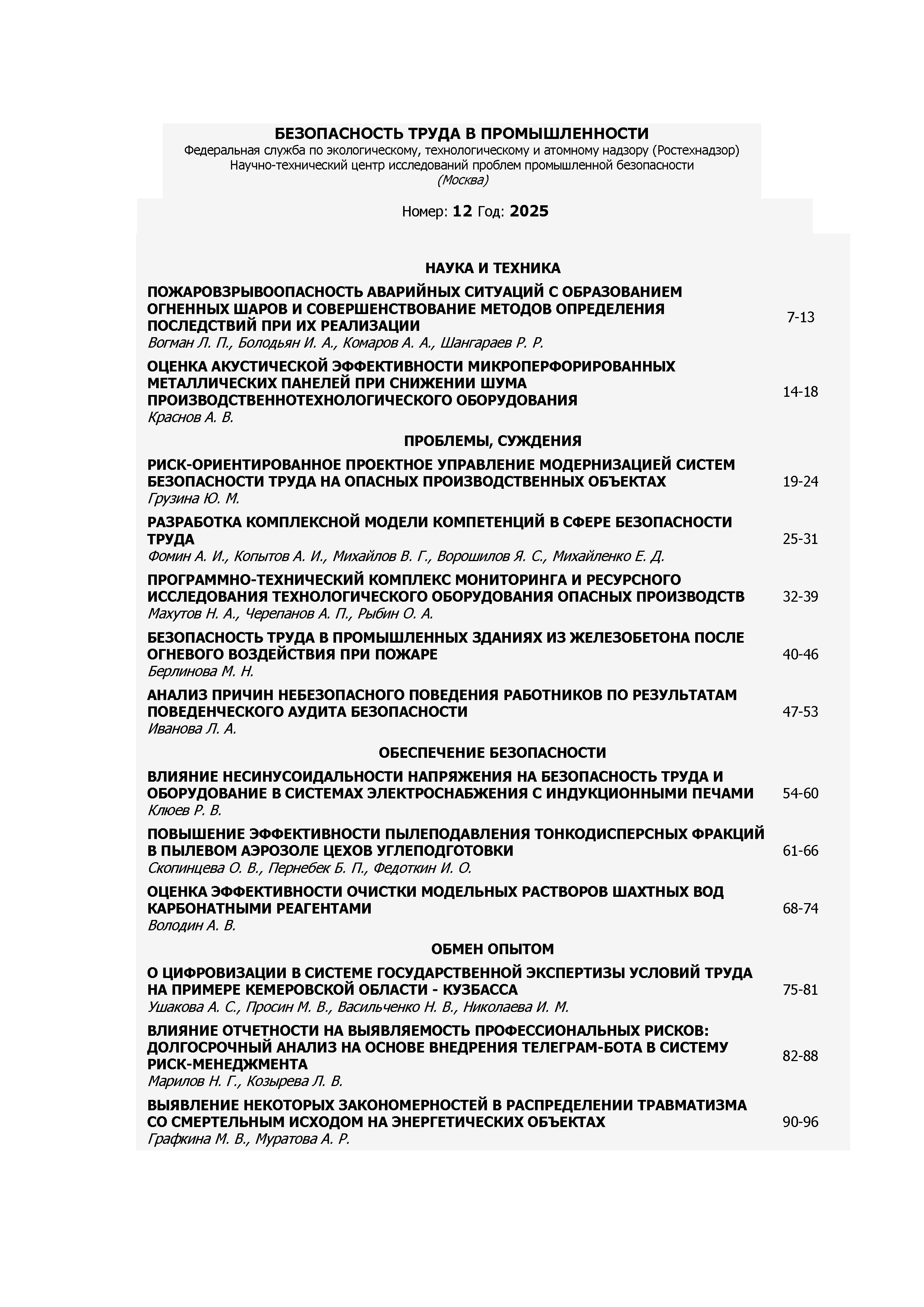 Безопасность труда в промышленности 2025 N12 | Безопасность труда в промышленности 2025 N12 | 2025 | 12 |