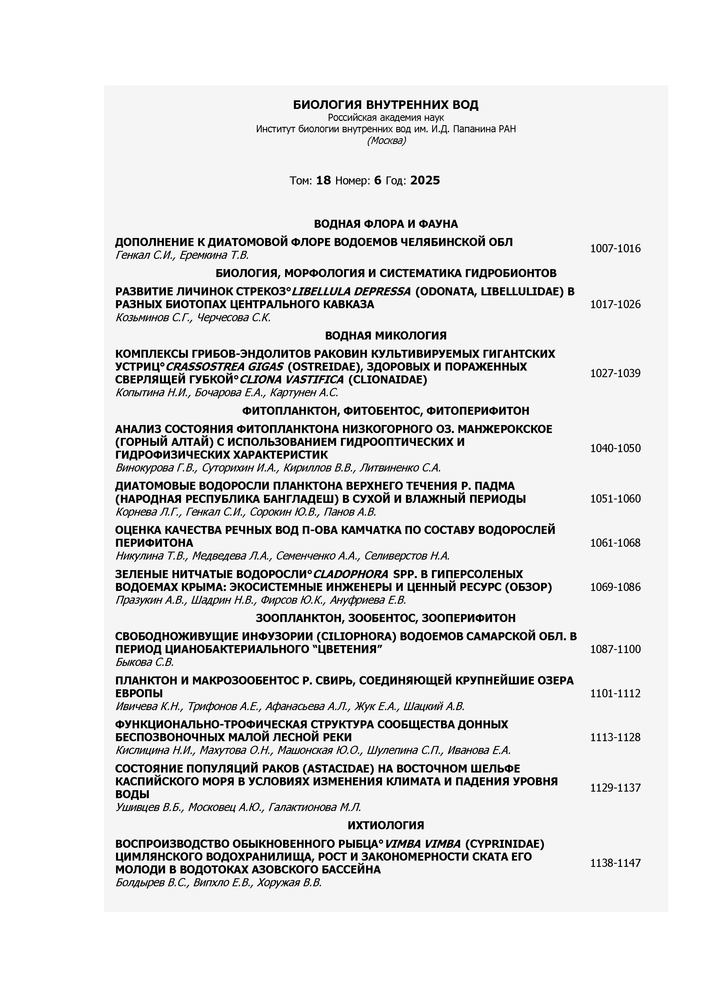 Биология внутренних вод 2025 N 6 | Биология внутренних вод 2025 N 6 | 2025 | 6 |