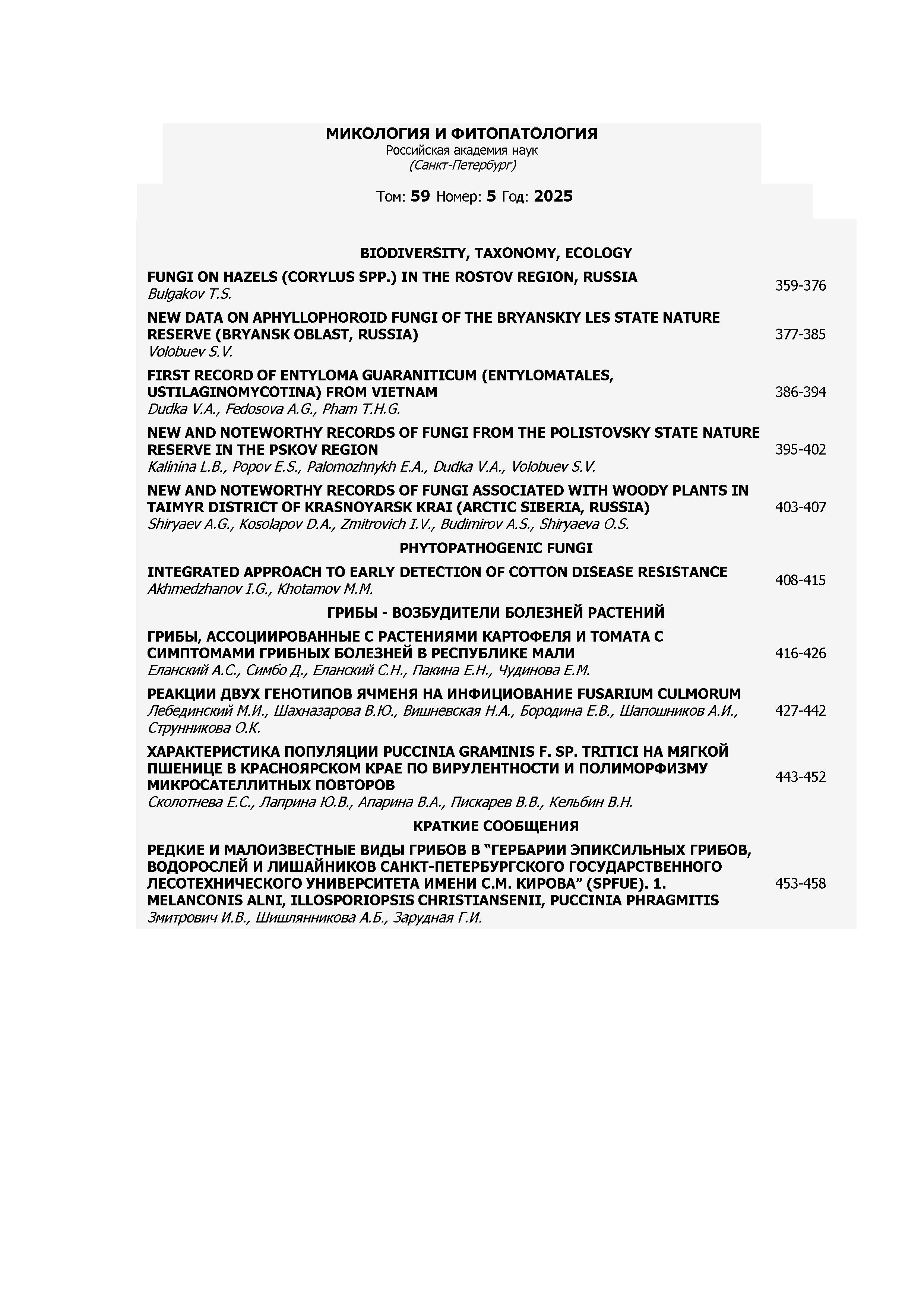 16.10.2025-17:31 Микология и фитопатология 2025 N 5 Микология и фитопатология 2025 N 5 2025 5