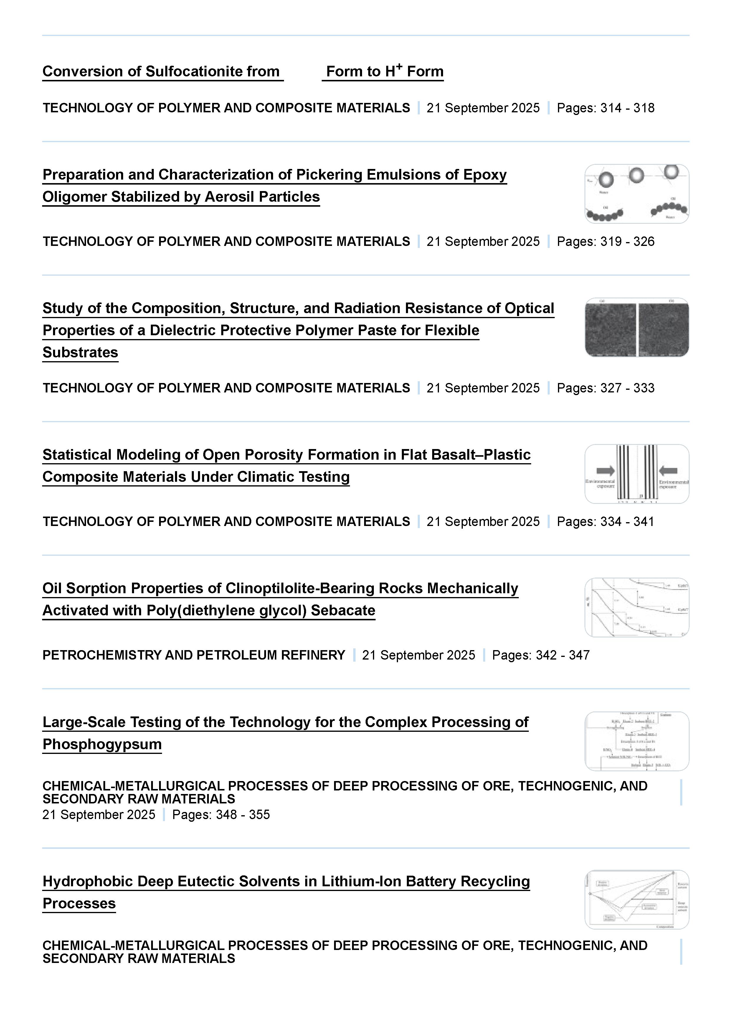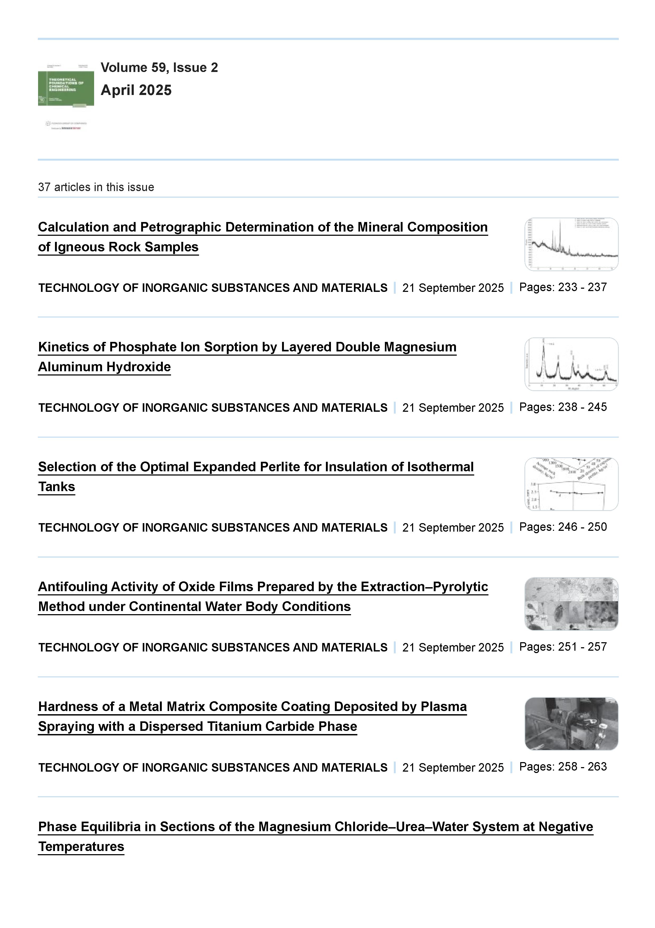 Theoretical Foundations of Chemical Engineering 2025 Vol. 59 № 2 |