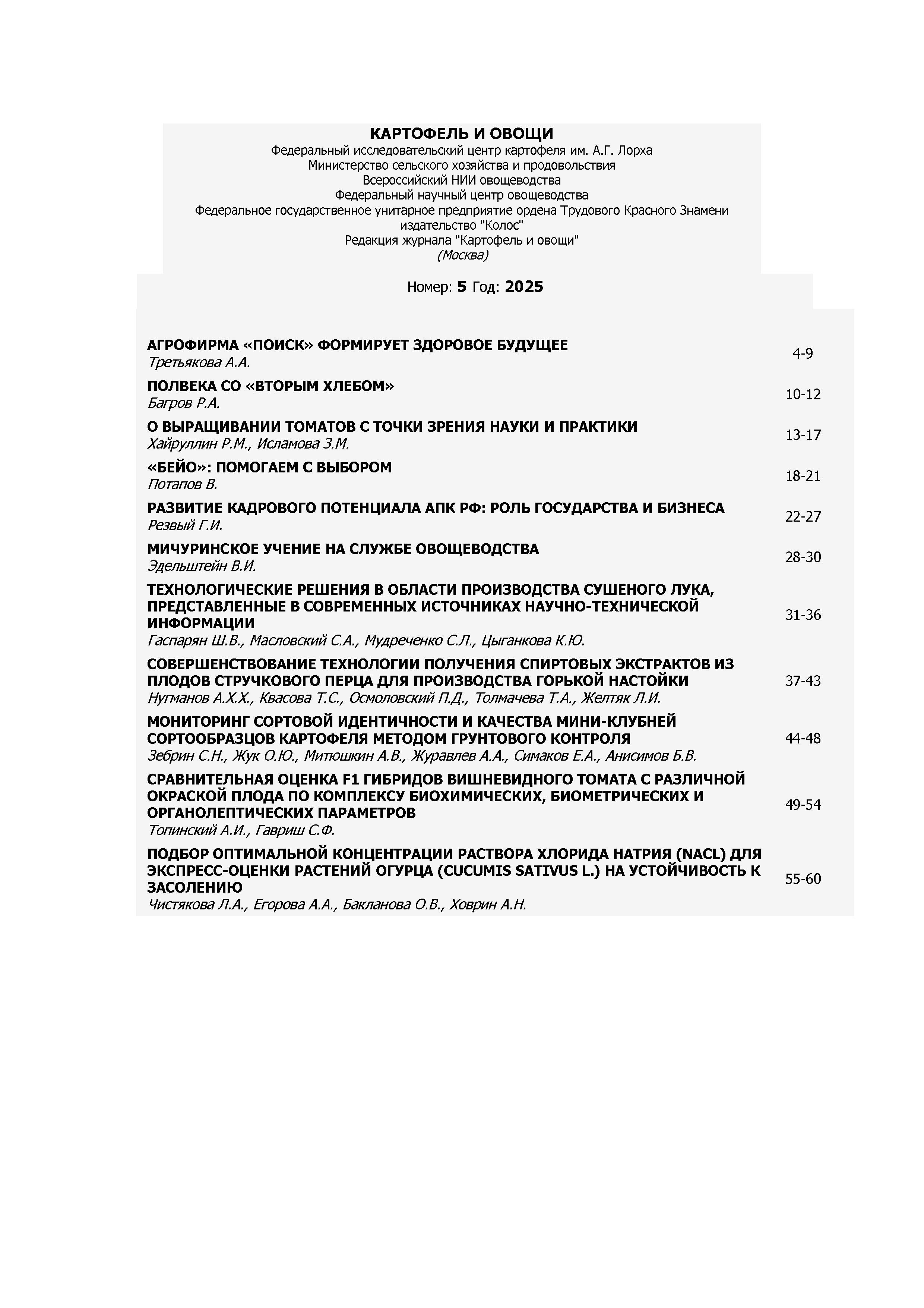 Картофель и овощи 2025 N 5 | Картофель и овощи 2025 N 5 | 2025 | 5 |
