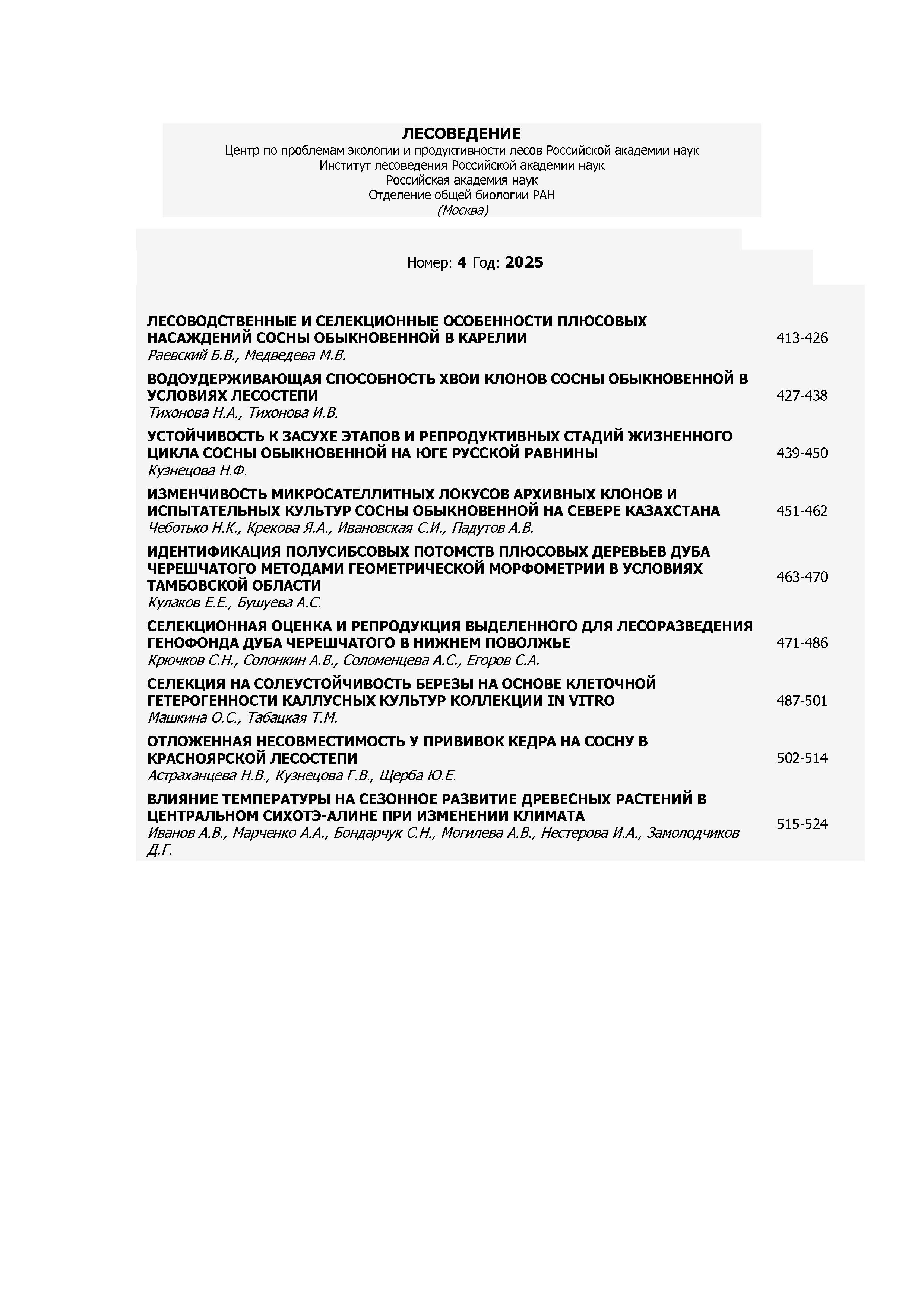 Лесоведение 2025 N 4 | Лесоведение 2025 N 4 | 2025 | 4 |
