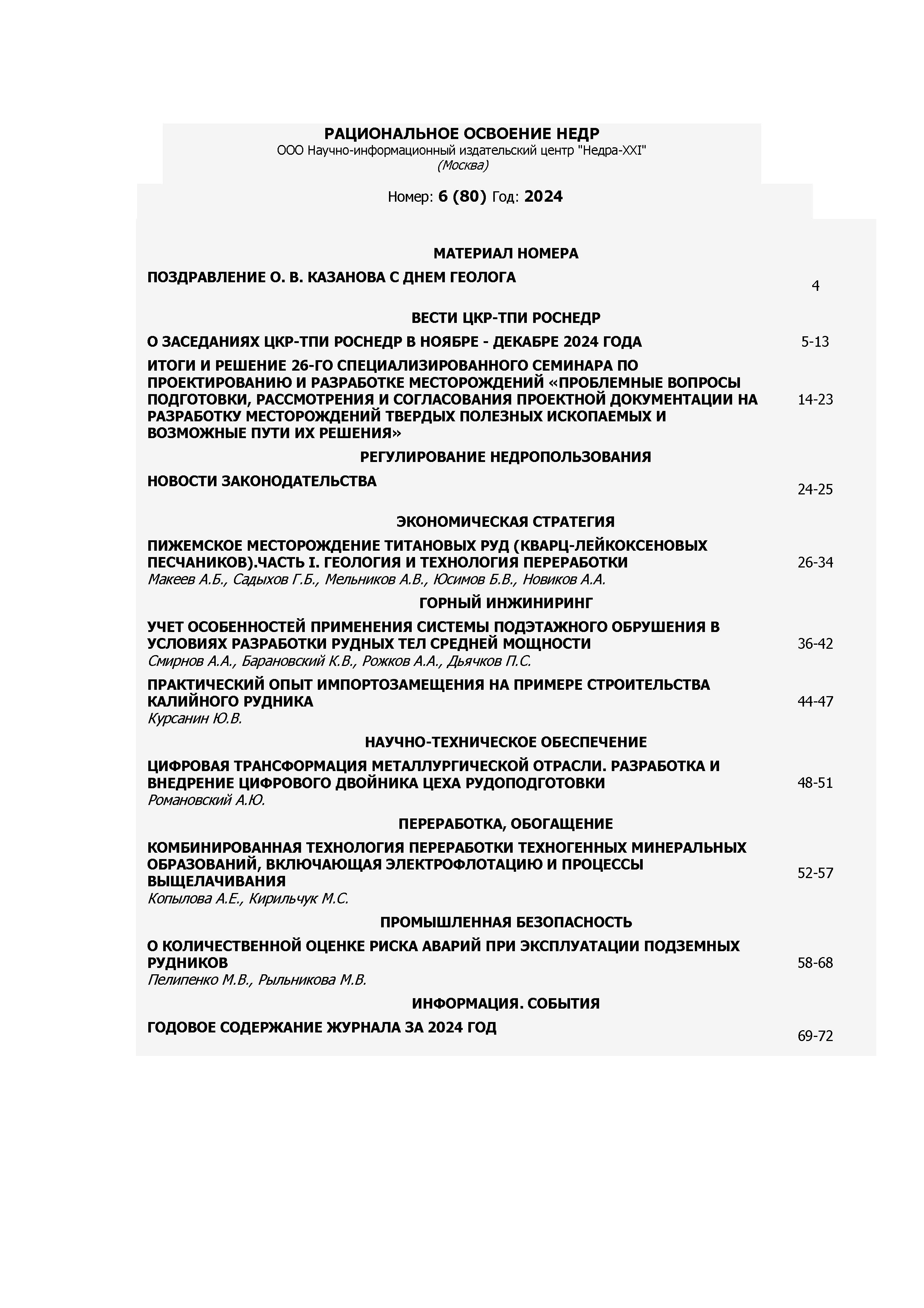Рациональное освоение недр 2024 N 6 | Рациональное освоение недр 2024 N 6 | 2024 | 6 |
