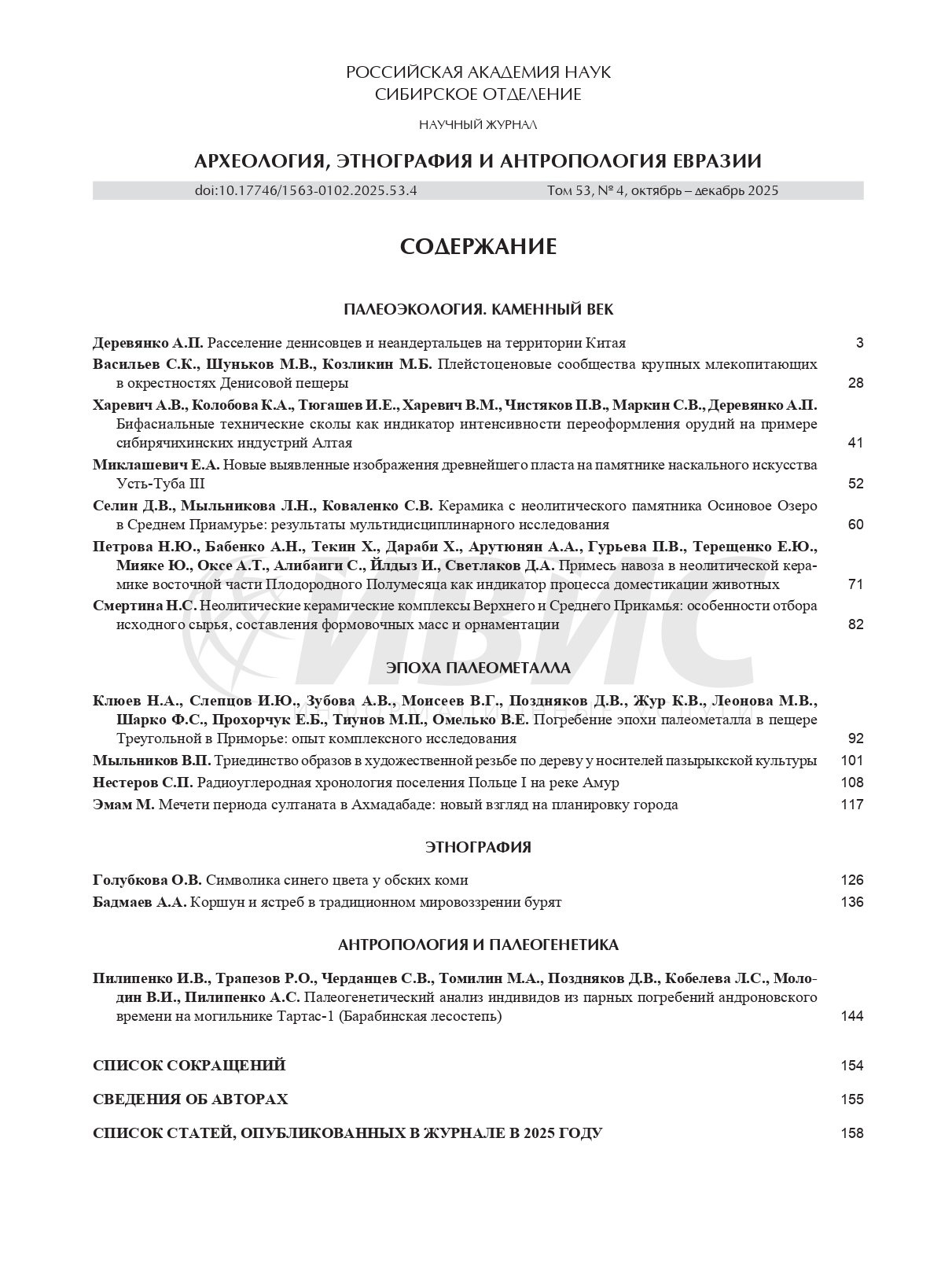 Археология, этнография и антропология Евразии 2025 № 4 |