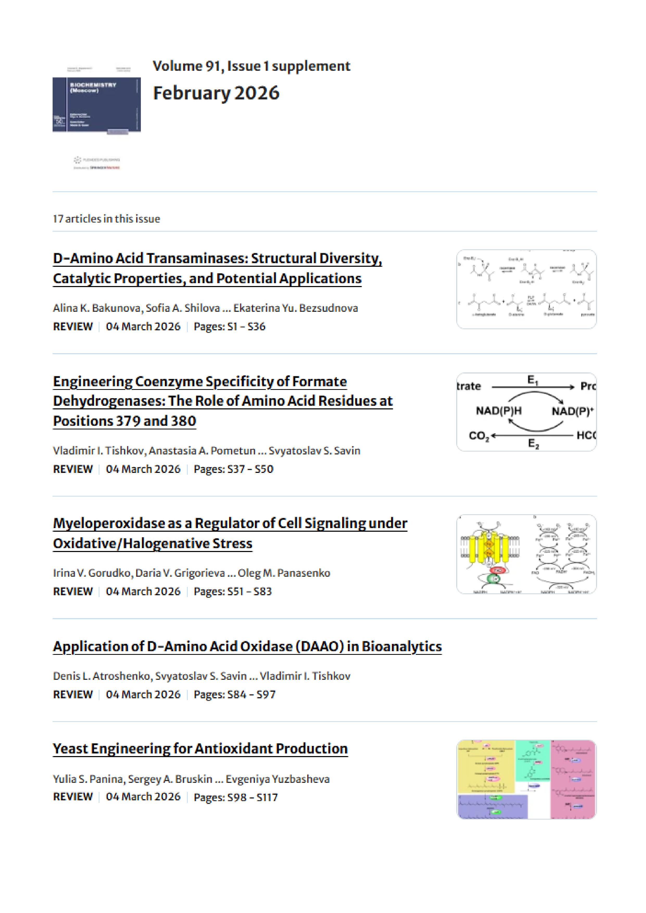 Biochemistry (Moscow) 2026 Vol. 91 Is.1 supplement |
