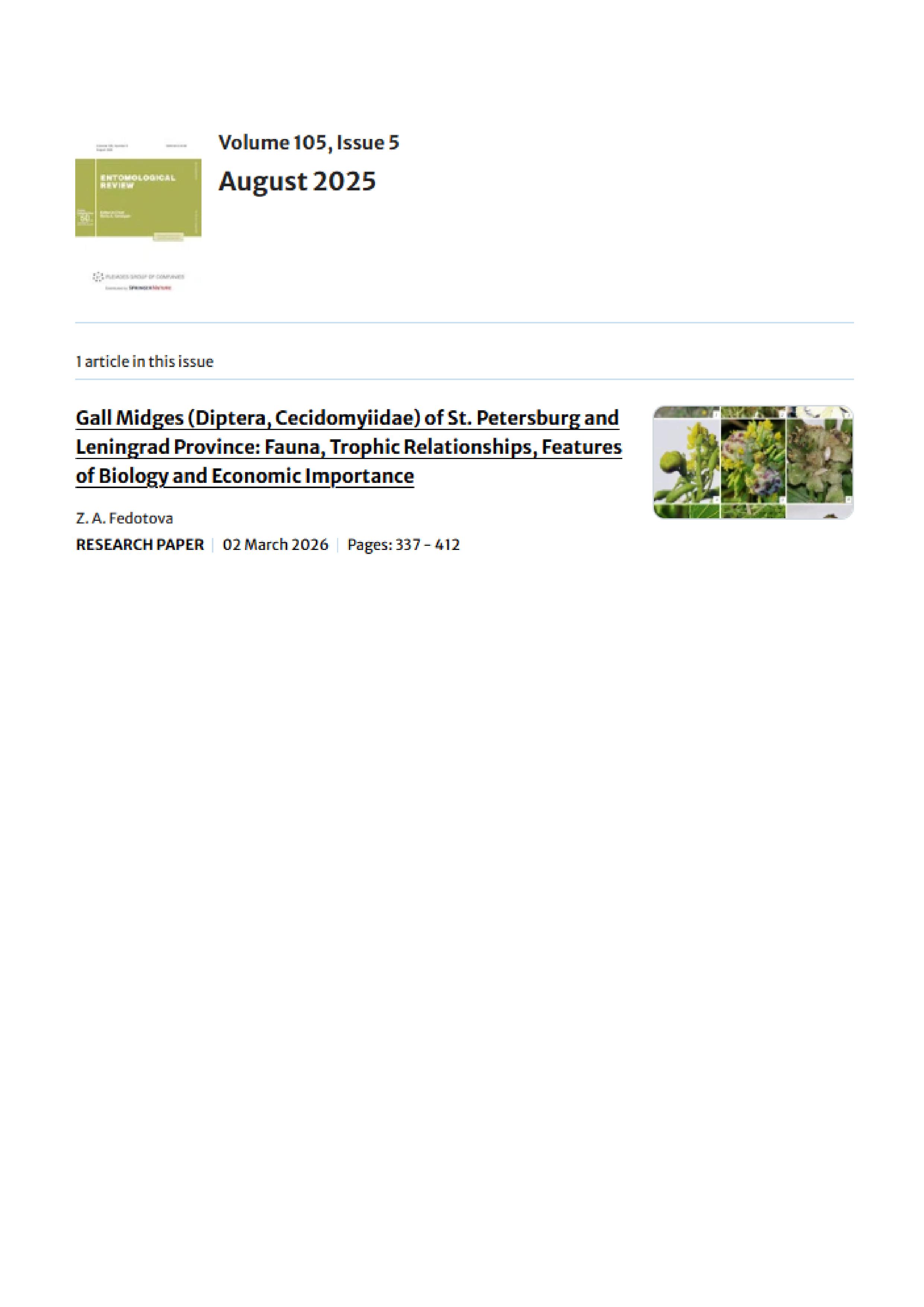 Entomological Review 2025 Vol. 105 Is. 5 |