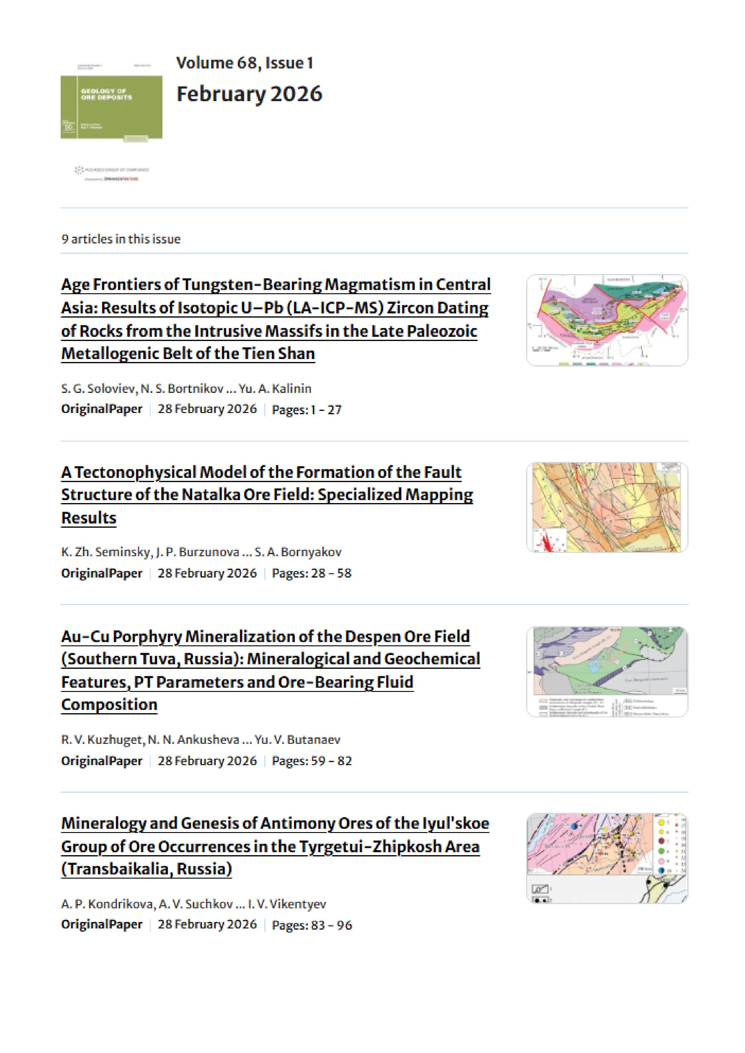 Geology of Ore Deposits 2026 Vol. 68 Is. 1 |