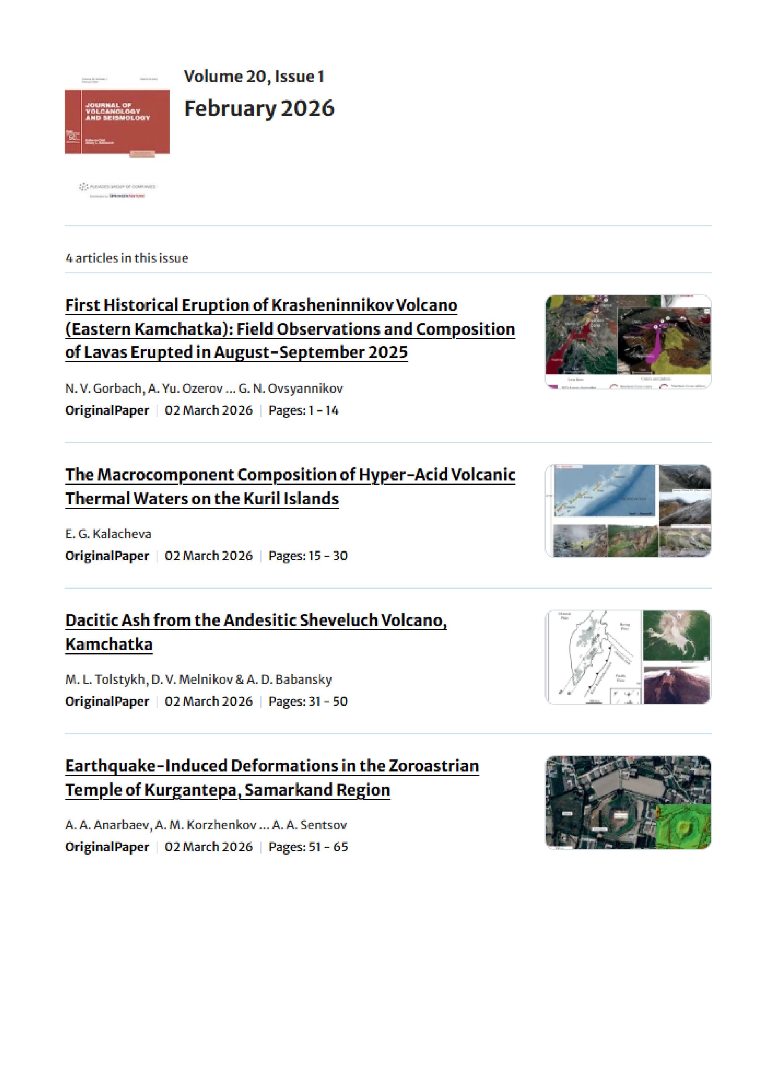 Journal of Volcanology and Seismology 2026 Vol. 20 Is. 1 |