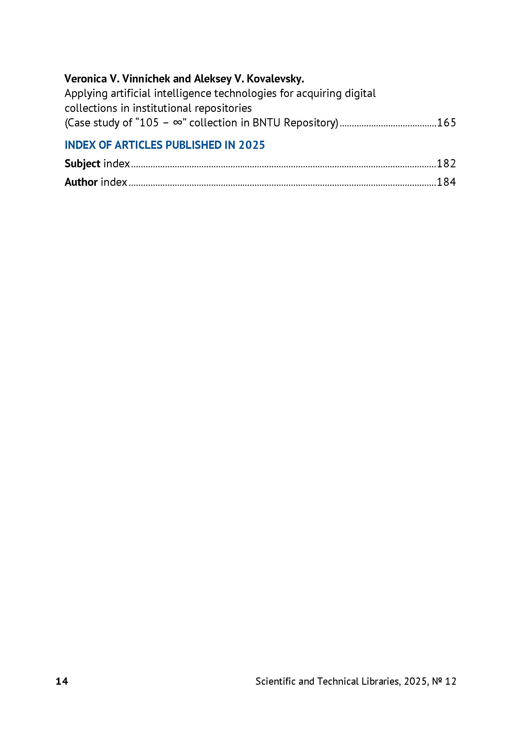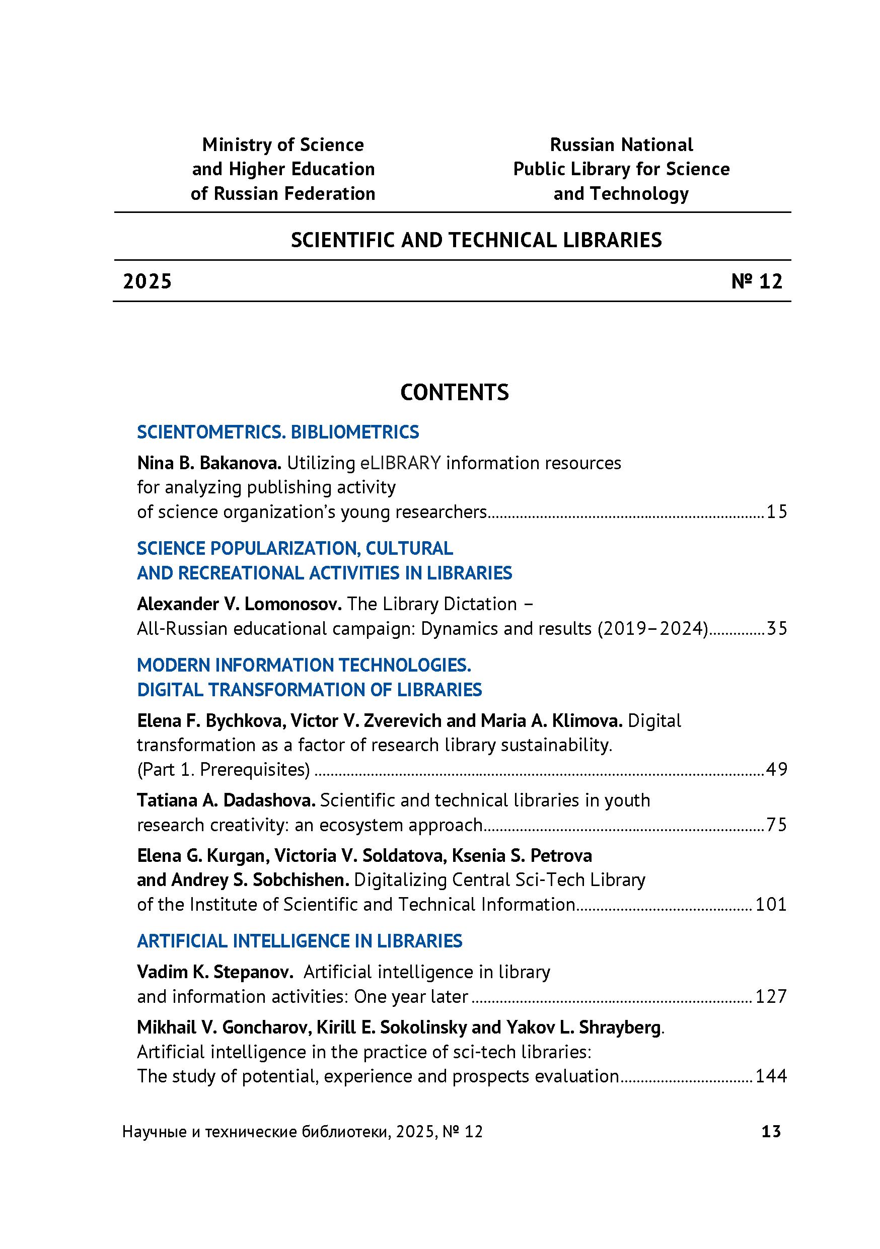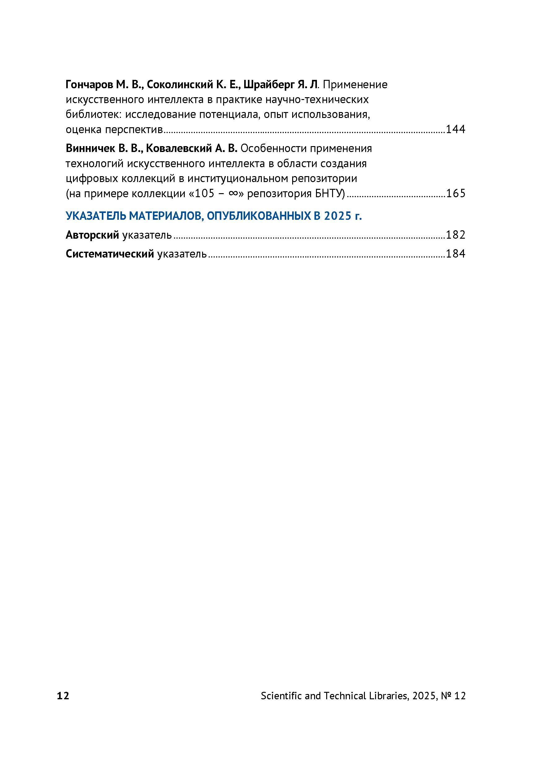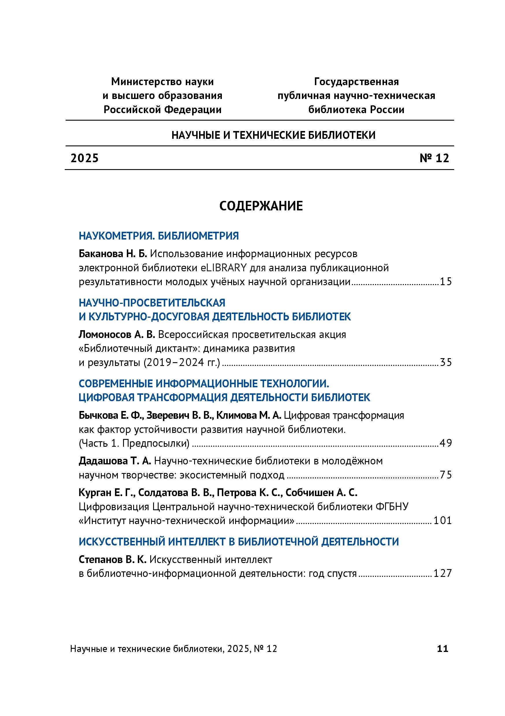 Научные и технические библиотеки 2025 № 12 | Научные и технические библиотеки 2025 № 12 | 2025 | 12 |