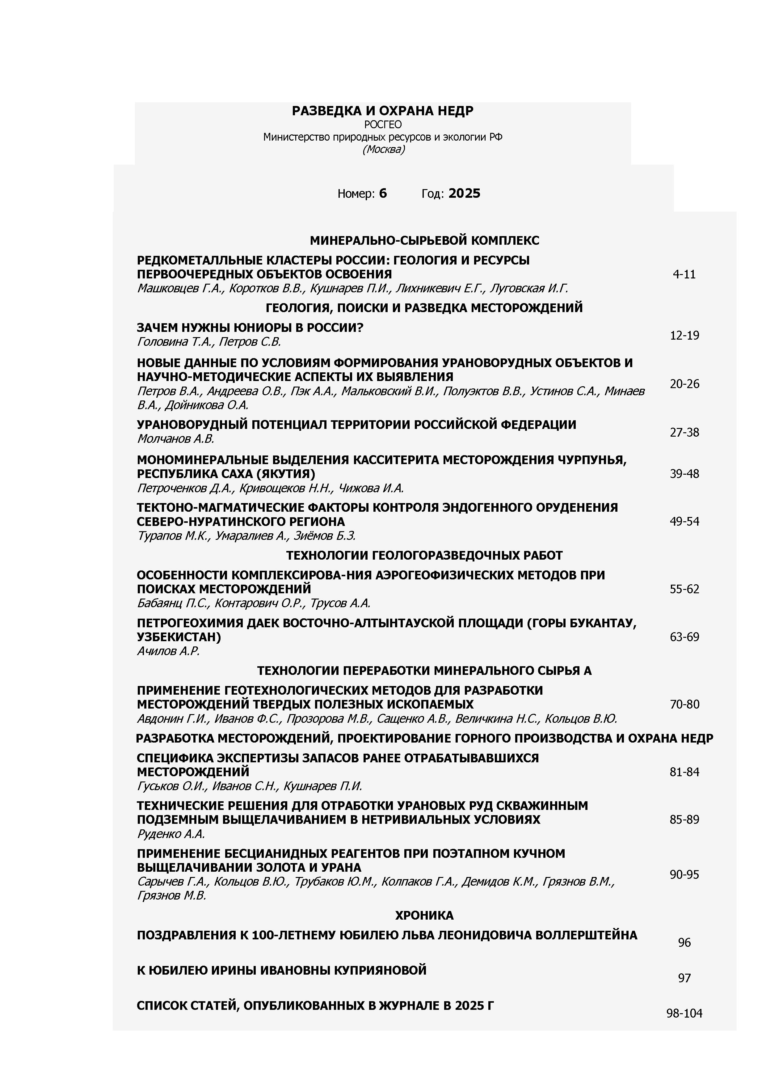 Разведка и охрана недр 2025 N 6 | Разведка и охрана недр 2025 N 6 | 2025 | 6 |