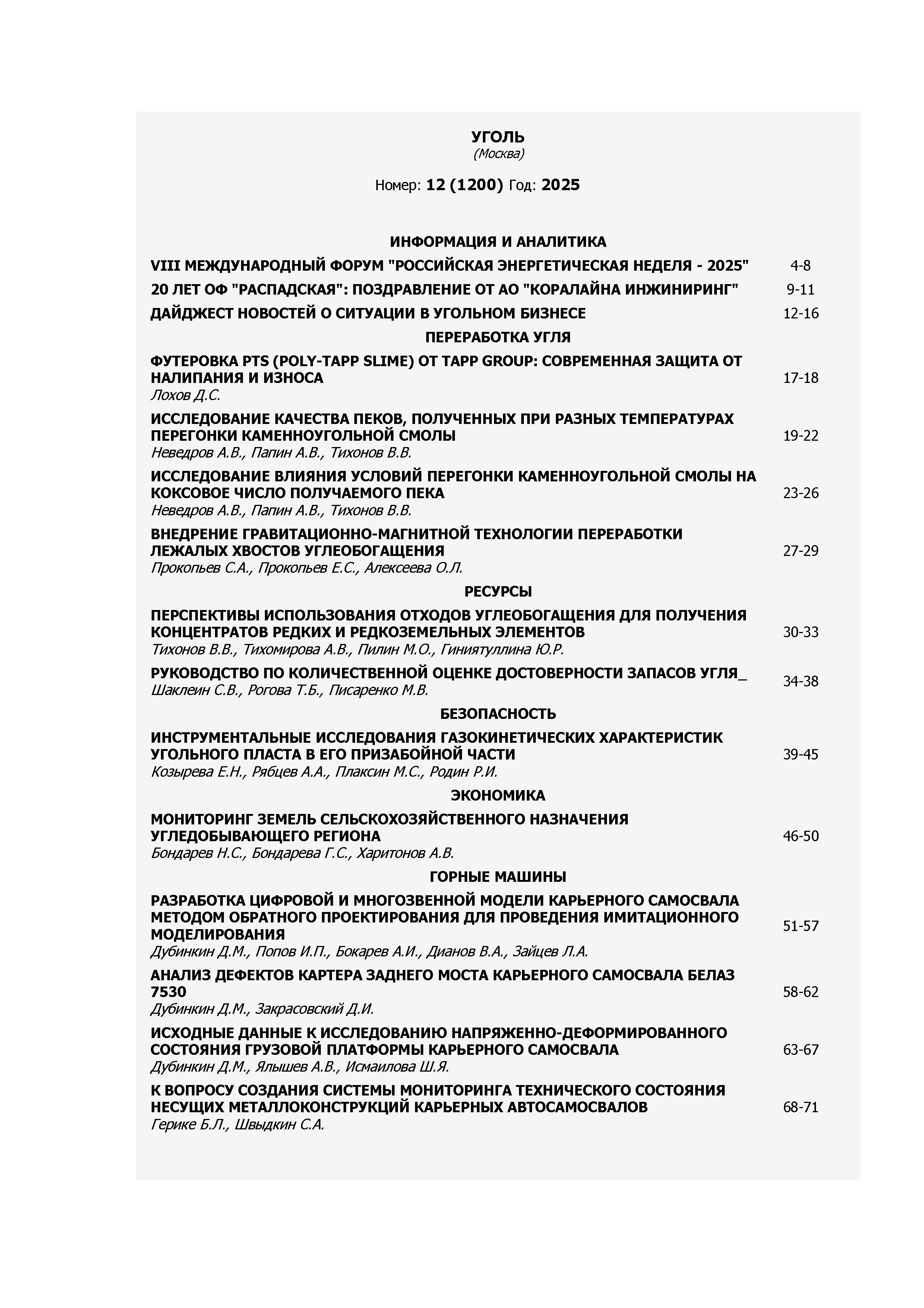 Уголь 2025 N12 | Уголь 2025 N12 | 2025 | 12 |