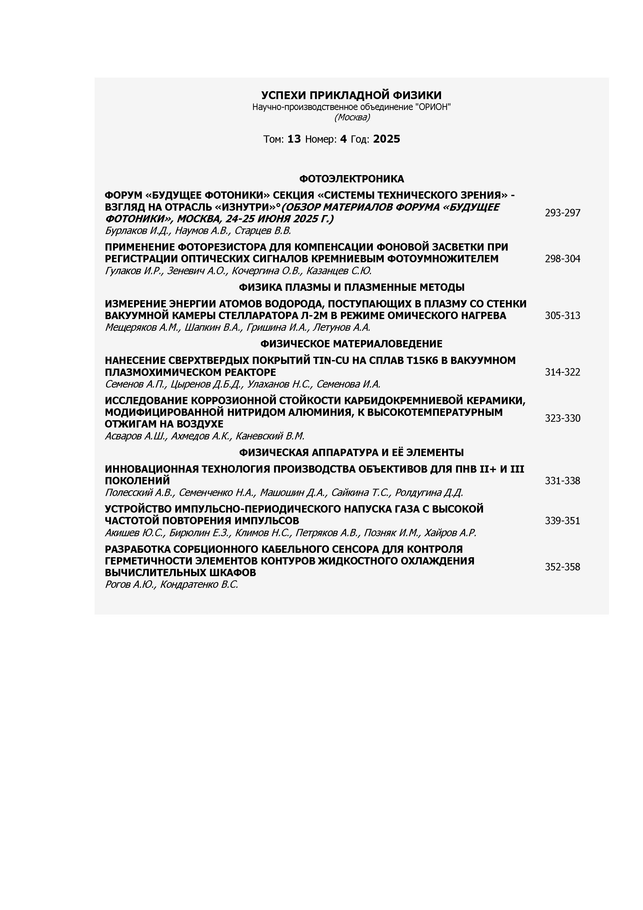 12.09.2025-12:37 Успехи прикладной физики 2025, Т.13 N 4 Успехи прикладной физики 2025, Т.13 N 4 2025 4