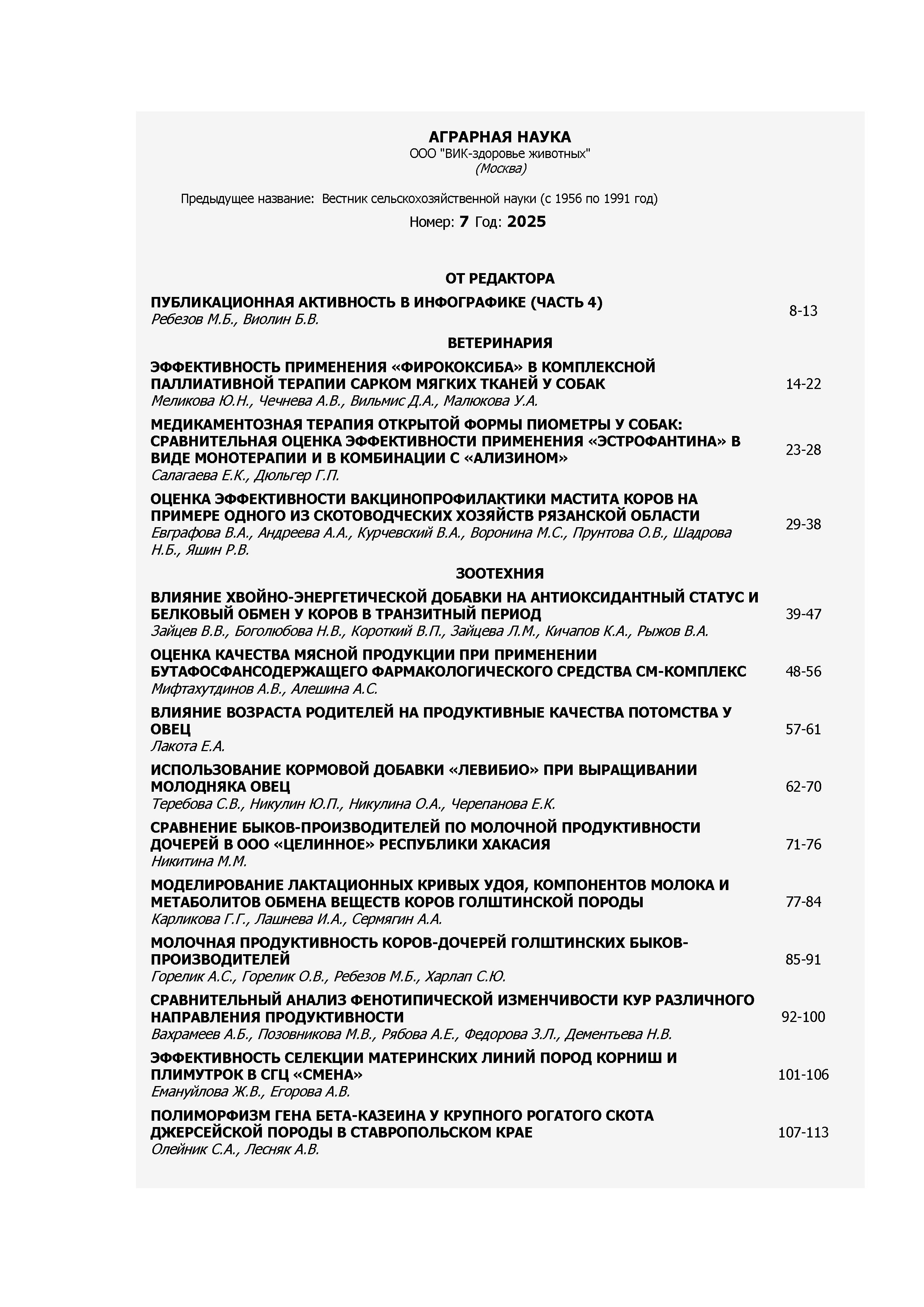 Аграрная наука 2025 N 7 | Аграрная наука 2025 N 7 | 2025 | 7 |