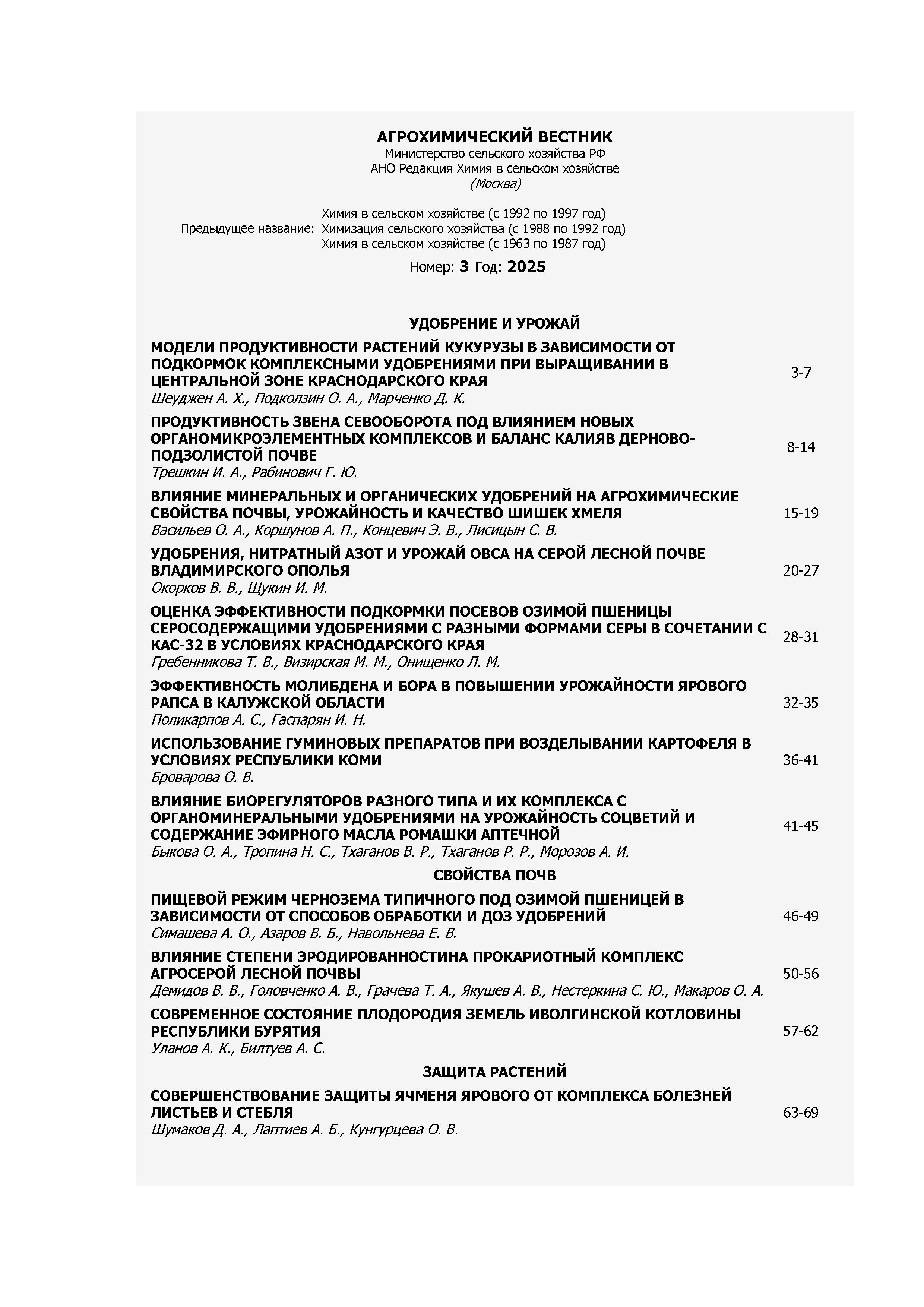 Агрохимический вестник 2025 N 3 | Агрохимический вестник 2025 N 3 | 2025 | 3 |