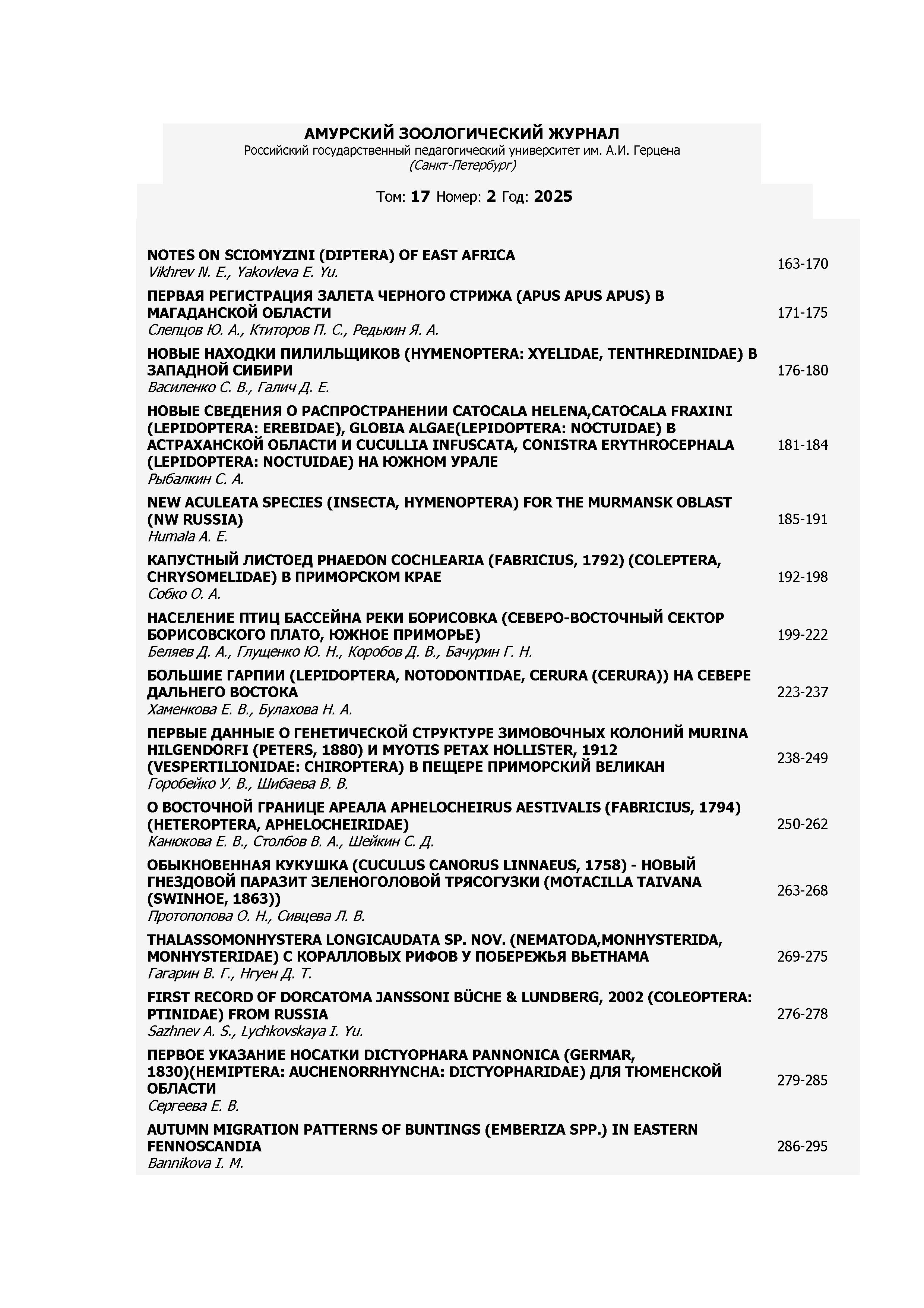 Амурский зоологический журнал 2025 N 2 | Амурский зоологический журнал 2025 N 2 | 2025 | 2 |