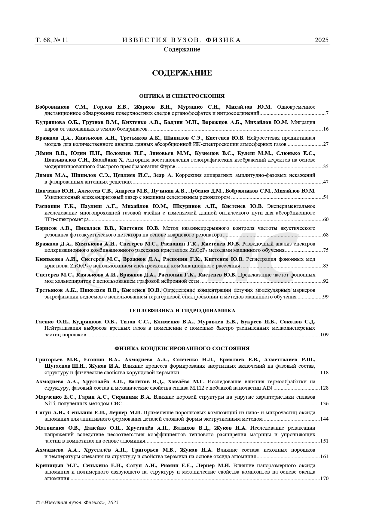 Известия ВУЗов. Сер. Физика 2025 Т.68 №11 |