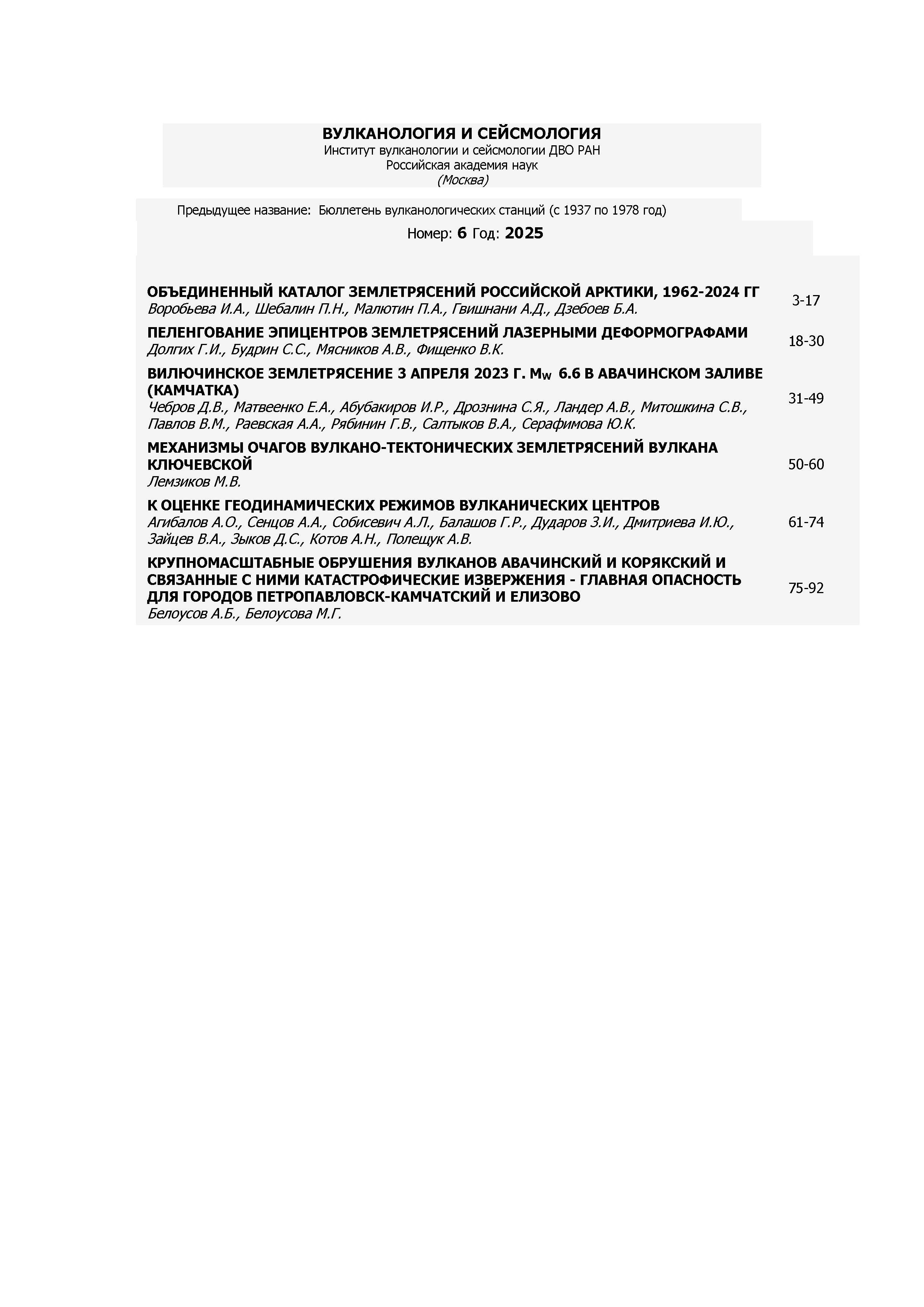 Вулканология и сейсмология 2025 N 6 |