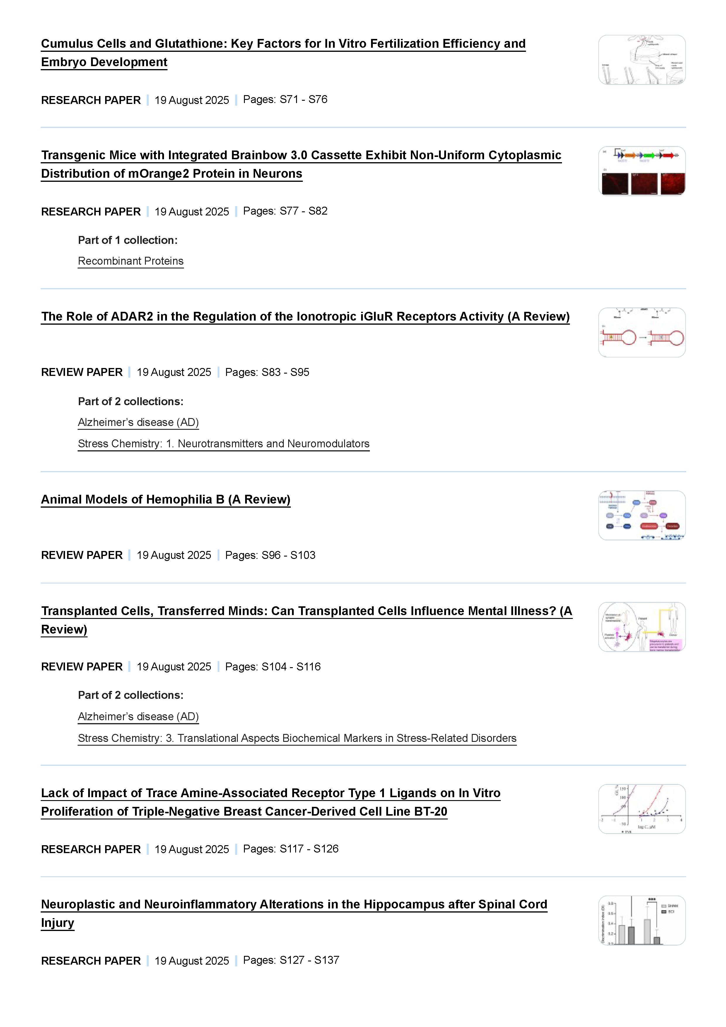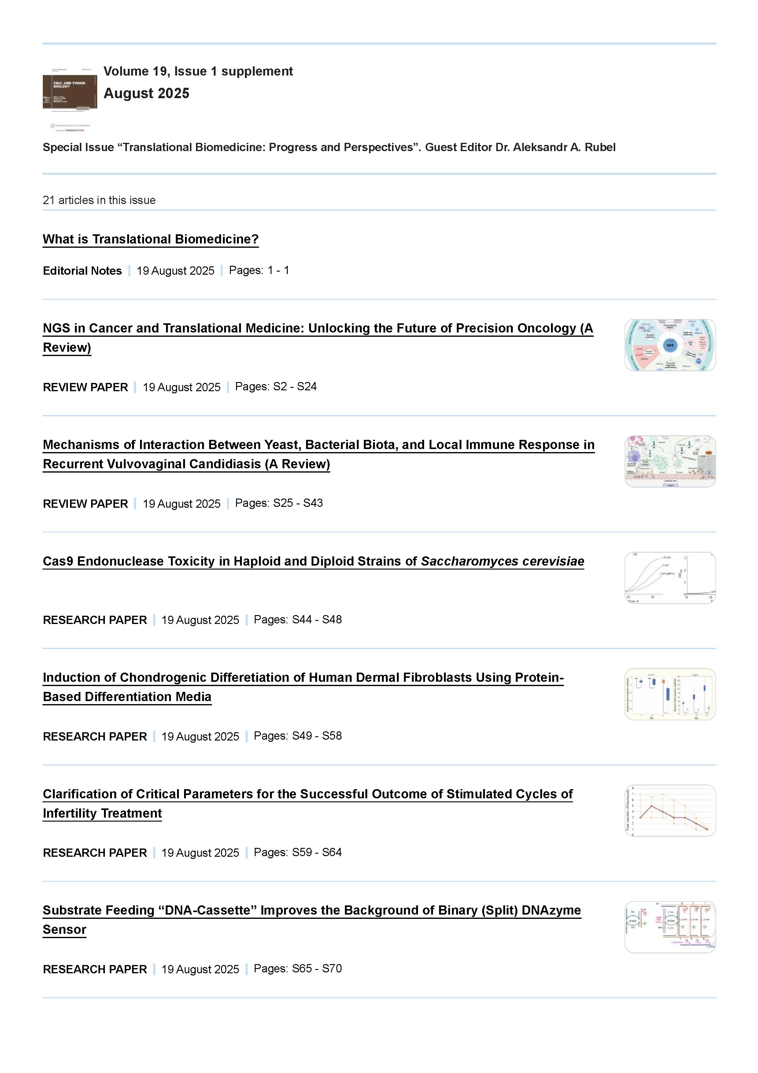 Cell and Tissue Biology 2025 Vol. 19 Is. 1 supplement : Special Issue “Translational Biomedicine: Progress and Perspectives” |