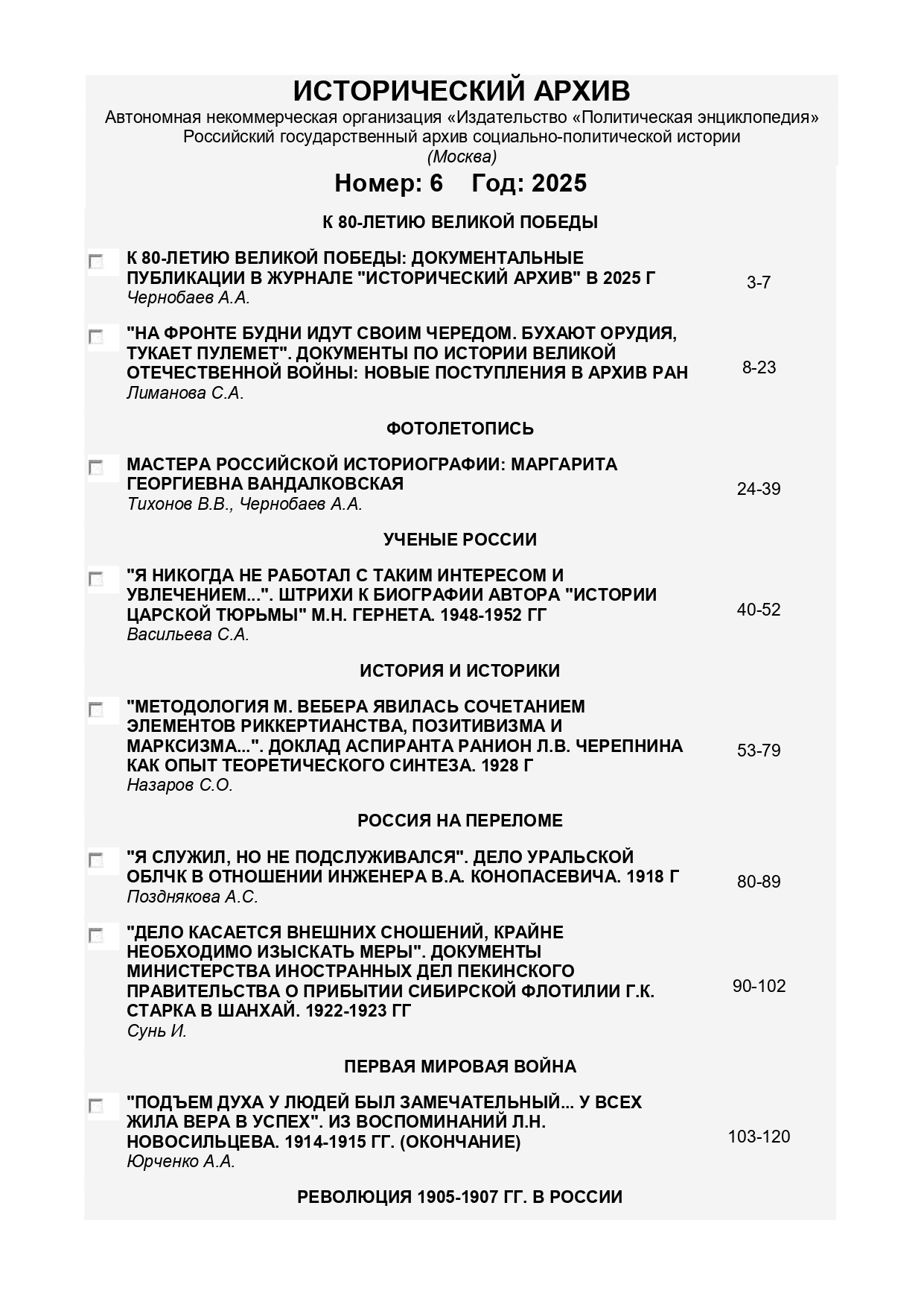 Исторический архив 2025 № 6 | Исторический архив 2025 № 6 | 2025 | 6 |