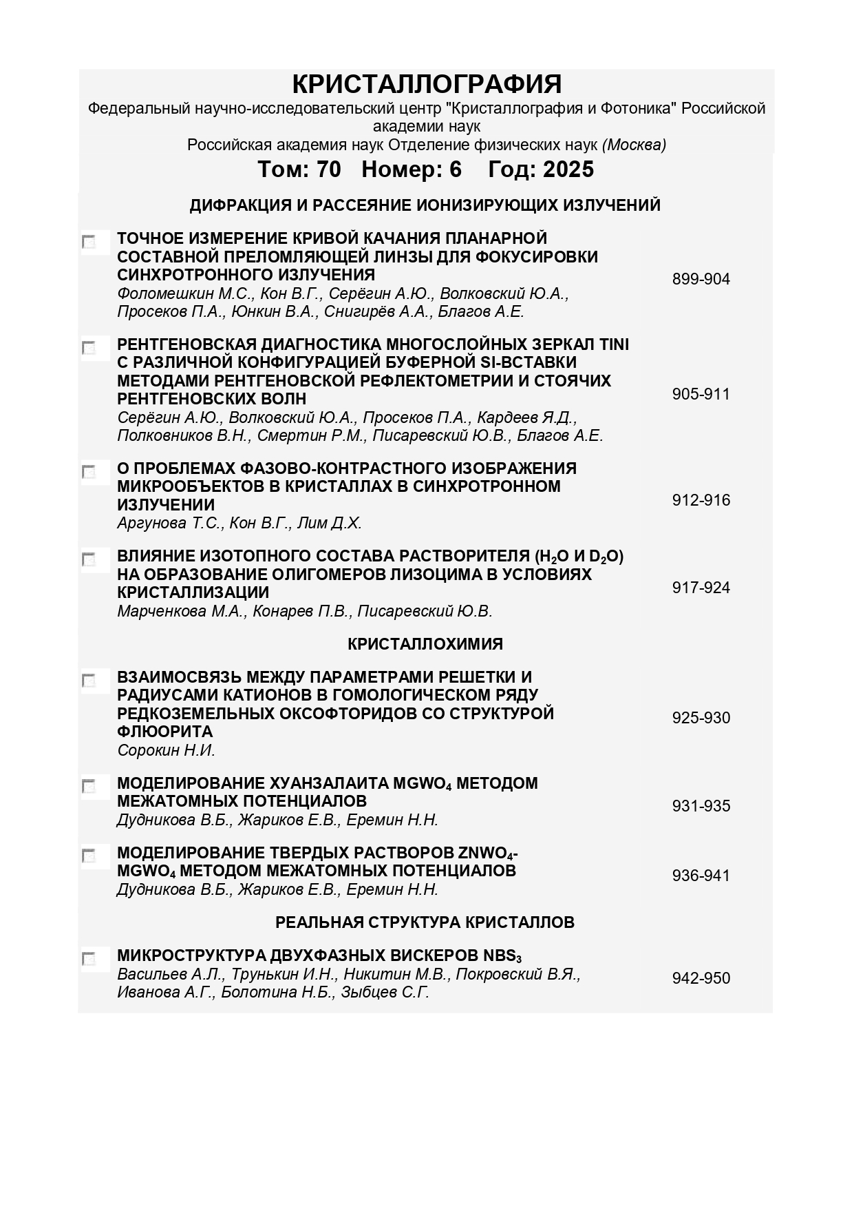 Кристаллография 2025 Т.70 № 6 | Кристаллография 2025 Т.70 № 6 | 2025 | 6 |