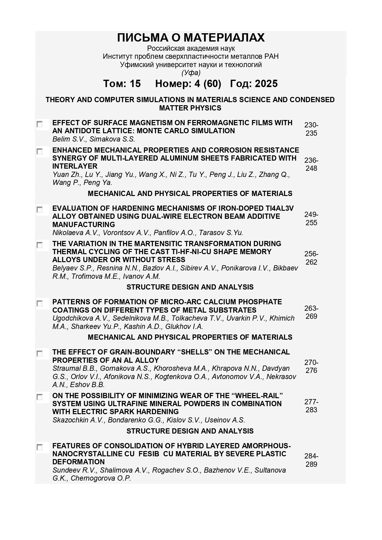 Письма о материалах 2025 Т. 15 № 4 | Письма о материалах 2025 Т. 15 № 4 | 2025 | 4 |