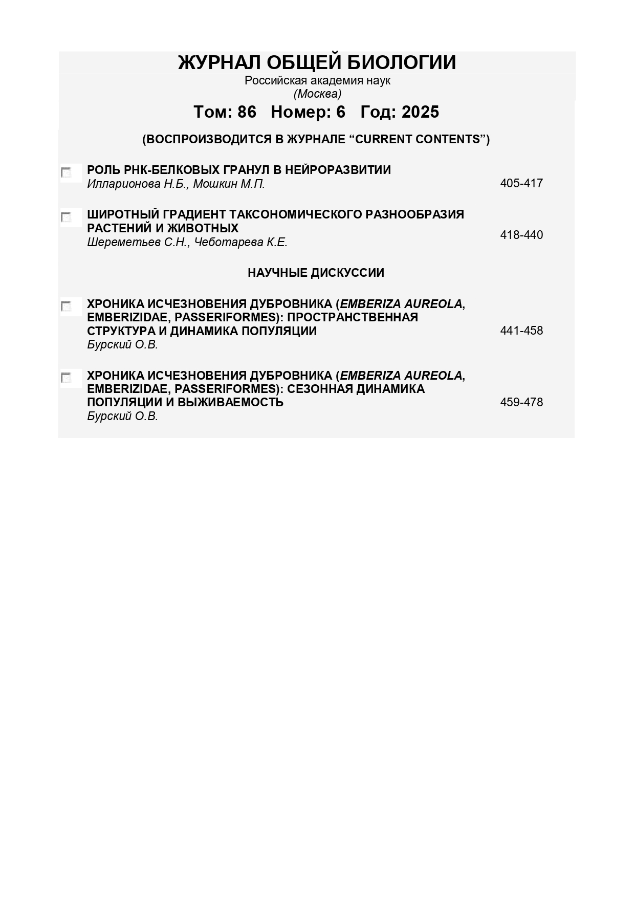 Журнал общей биологии 2025 Т.86 № 6 | Журнал общей биологии 2025 Т.86 № 6 | 2026 | 6 |