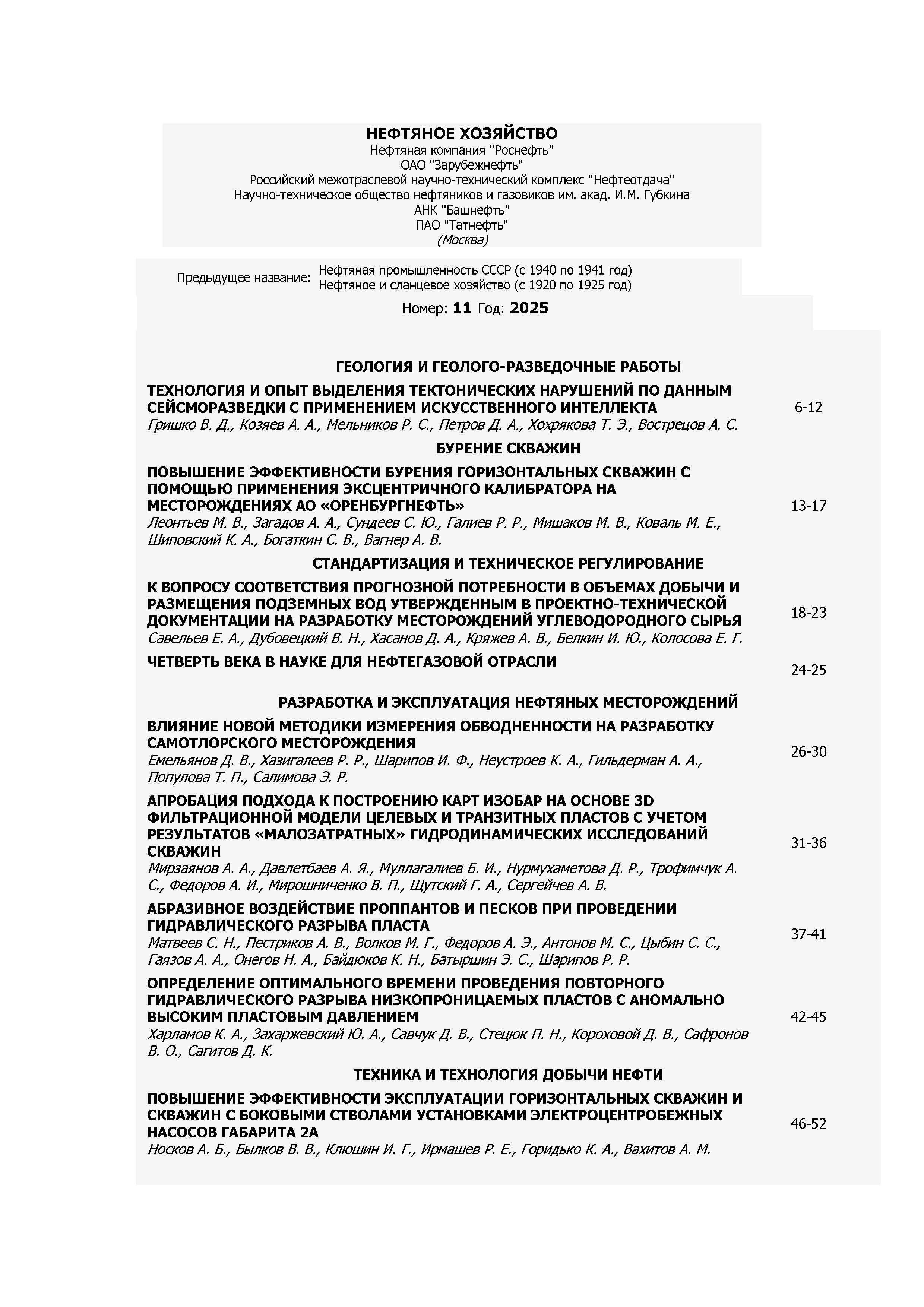 Нефтяное хозяйство 2025 N11 | Нефтяное хозяйство 2025 N11 | 2025 | 11 |