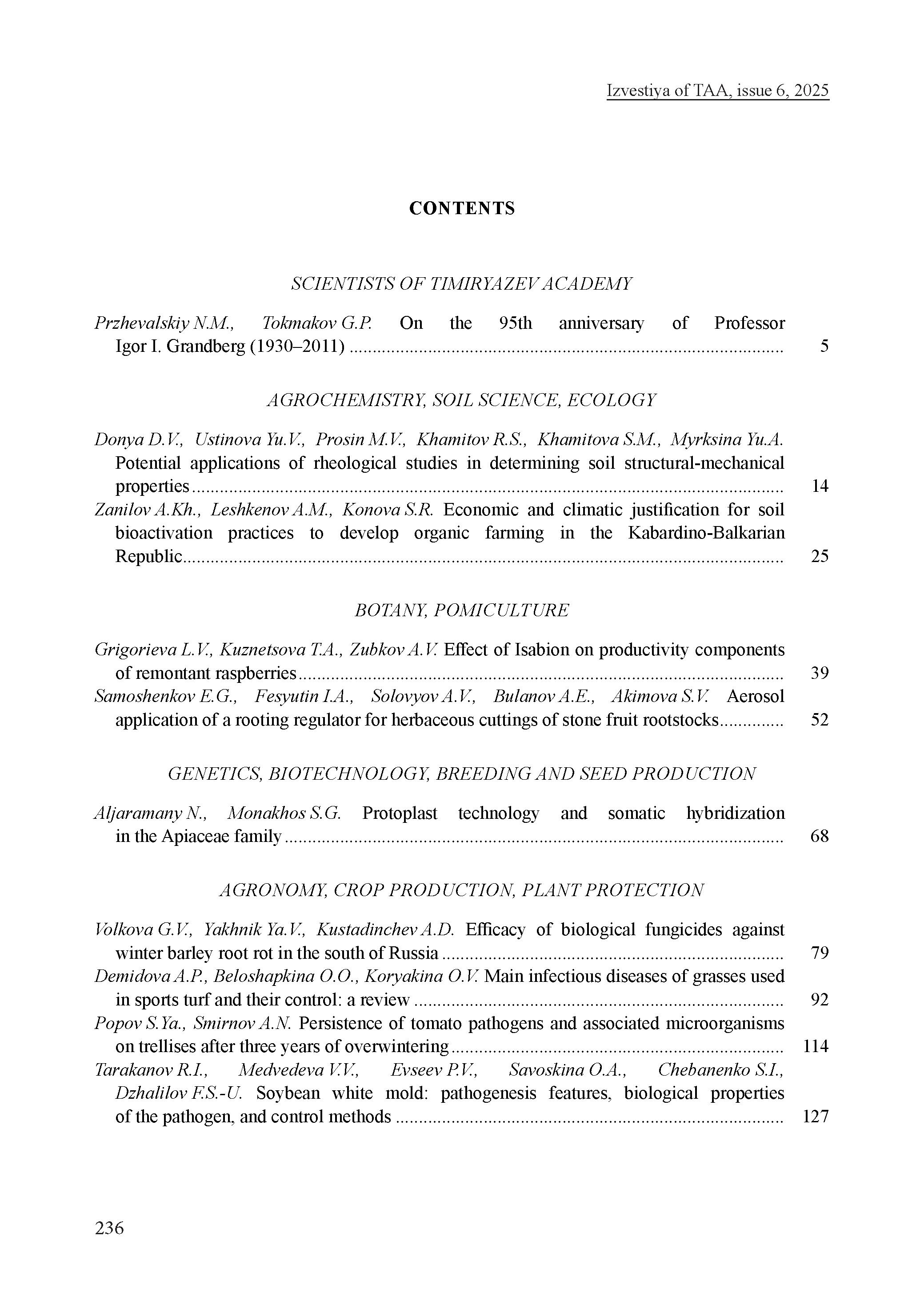 Известия Тимирязевской сельскохозяйственной академии 2025 N 6 |