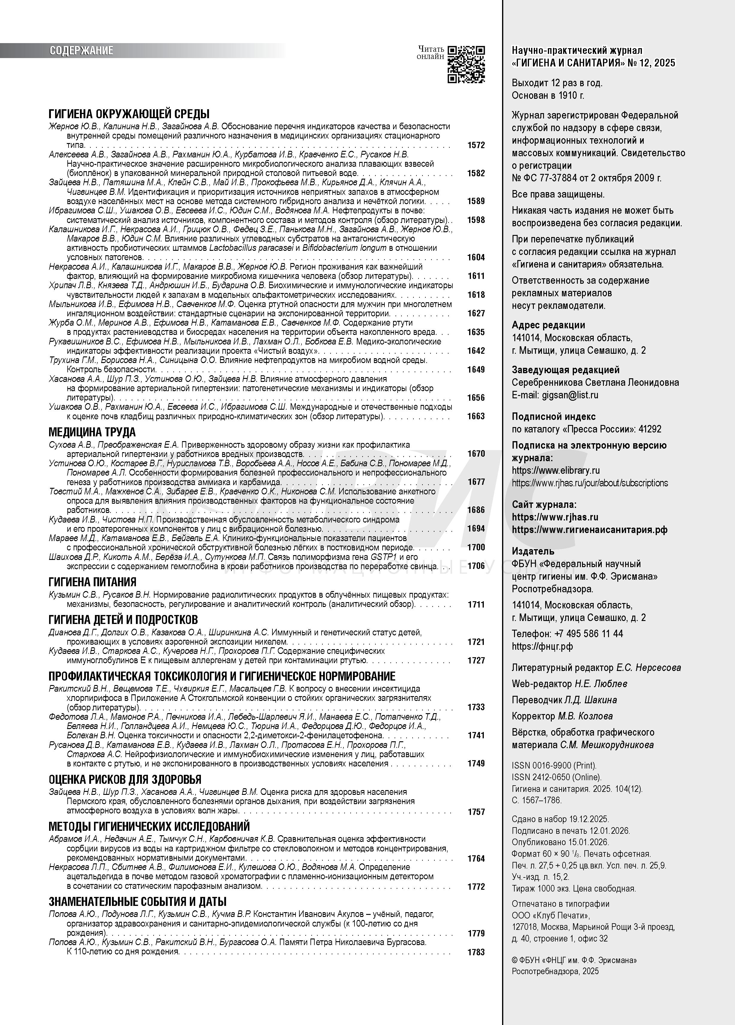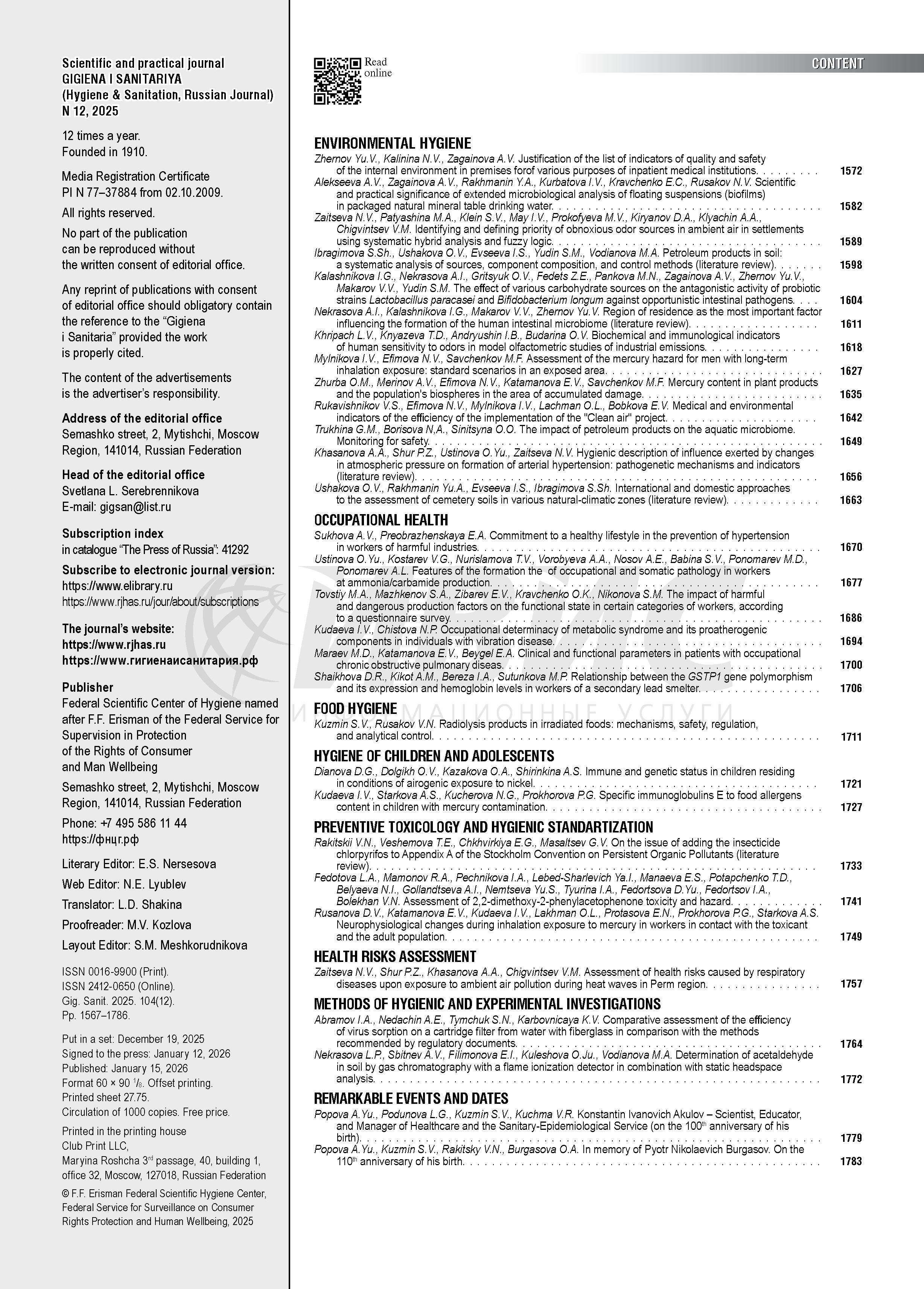 05.02.2026-17:21 Гигиена и санитария 2025 N12 Гигиена и санитария 2025 N12 2025 12 , ,