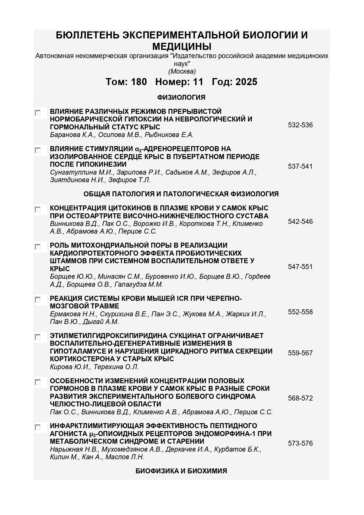 Бюллетень экспериментальной биологии и медицины 2025 Т.179 №11 |