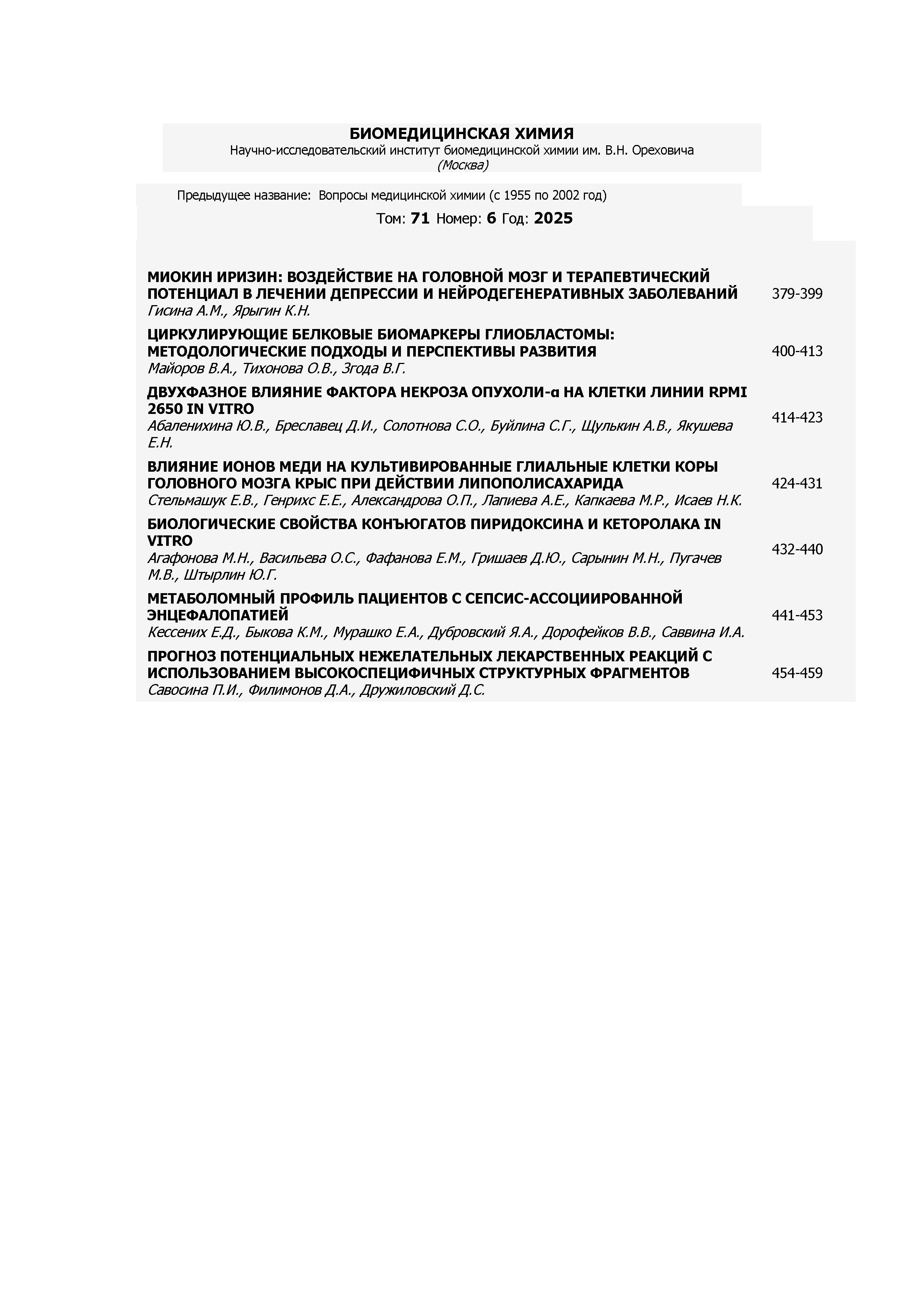 02.02.2026-15:17 Биомедицинская химия 2025 Т.71 N 6 Биомедицинская химия 2025 Т.71 N 6 2025 6