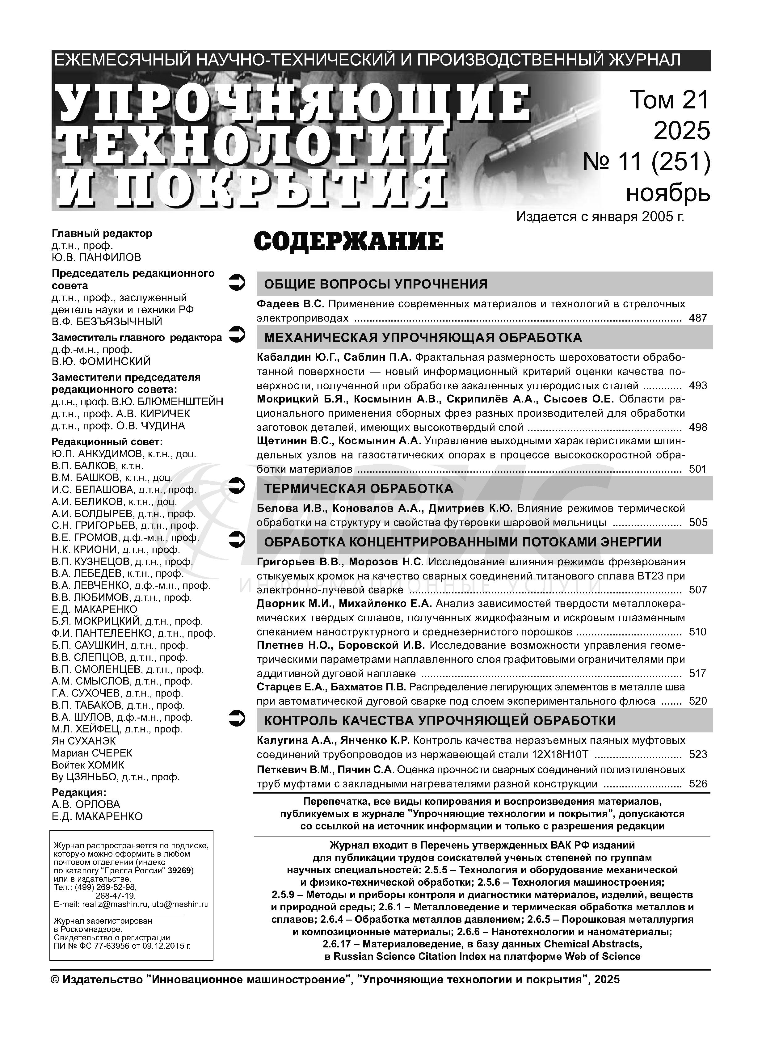 02.02.2026-14:57 Упрочняющие технологии и покрытия 2025 N11 Упрочняющие технологии и покрытия 2025 N11 2025 11 ,