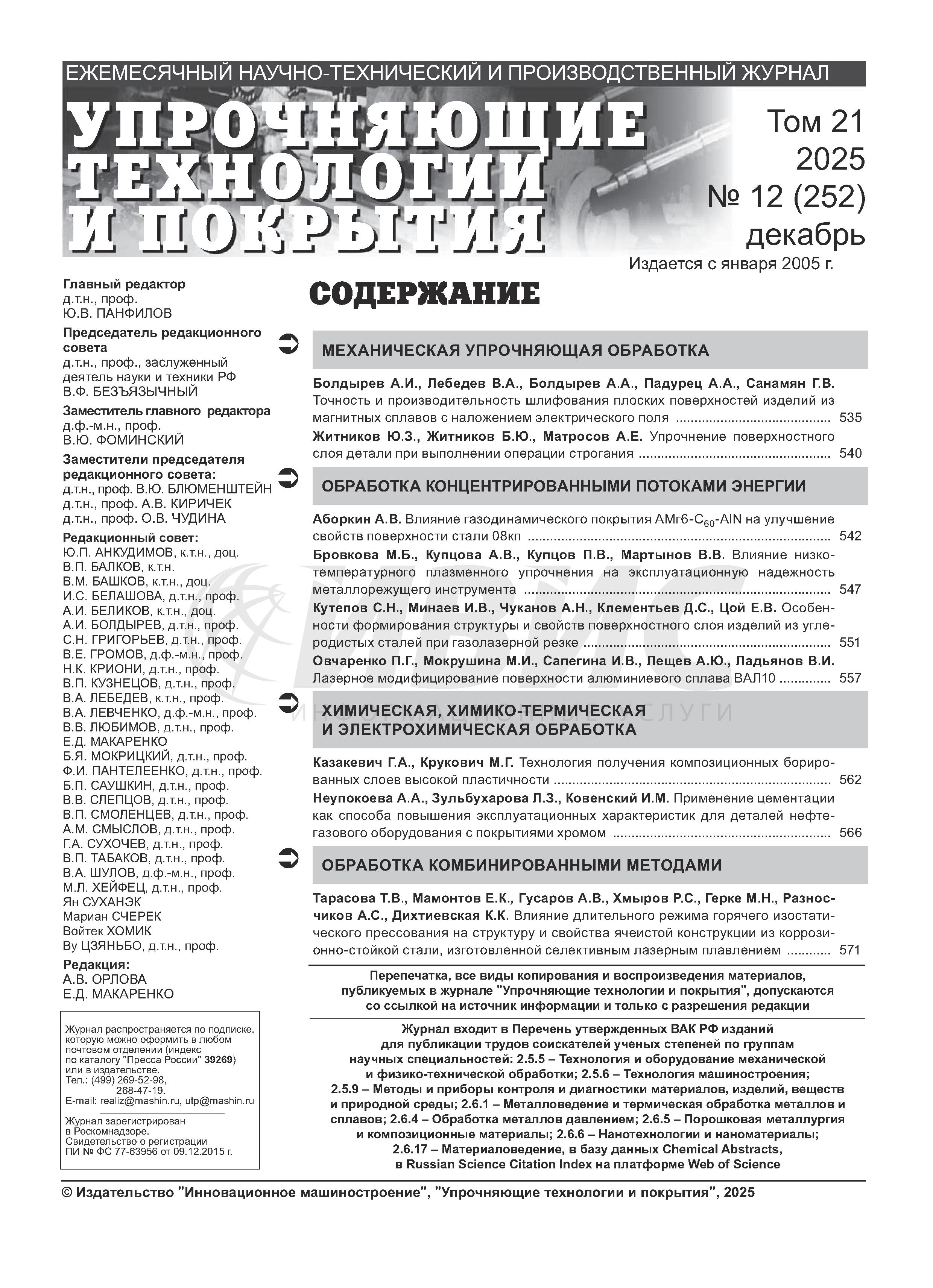 02.02.2026-14:58 Упрочняющие технологии и покрытия 2025 N12 Упрочняющие технологии и покрытия 2025 N12 2025 12 ,