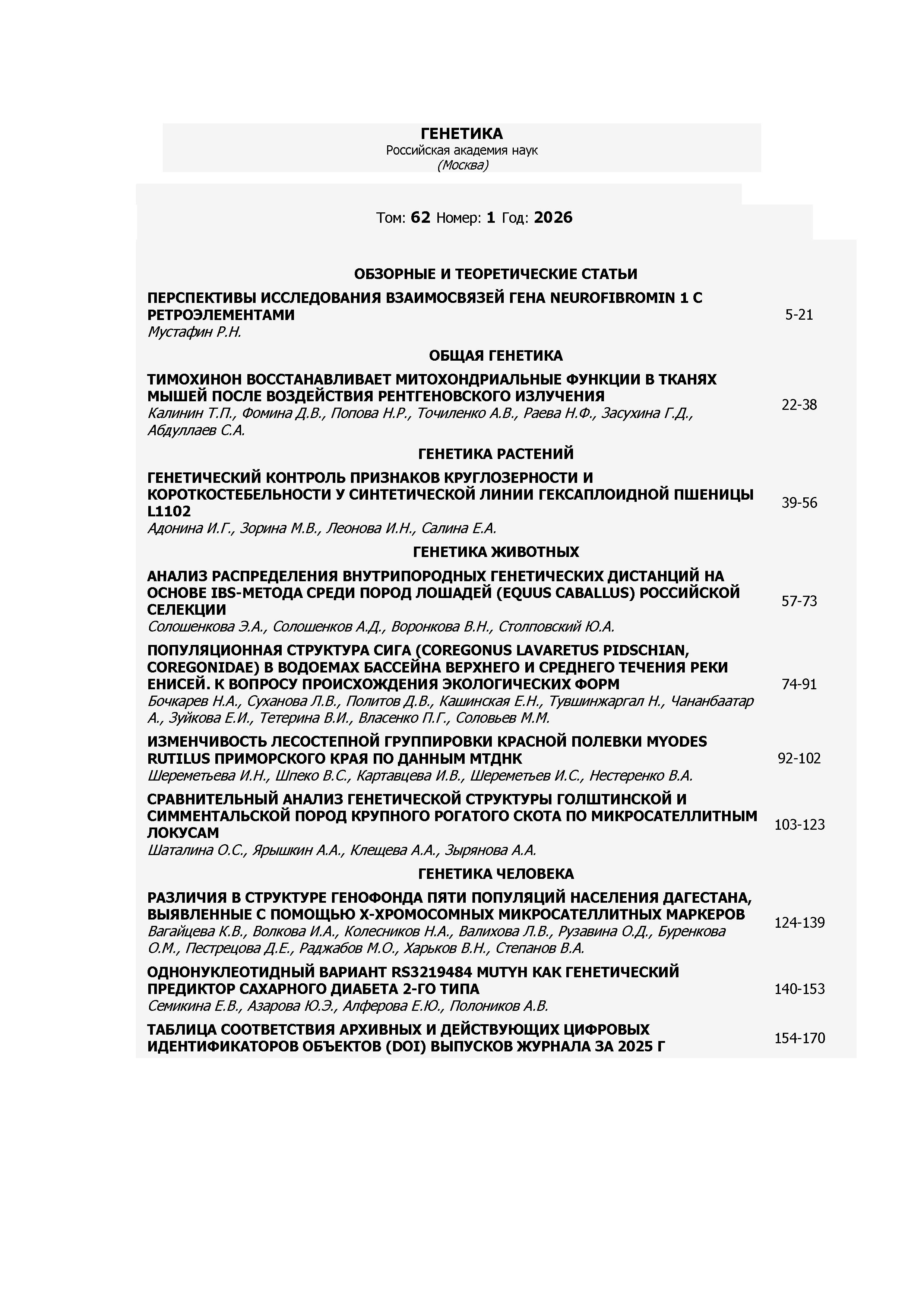 Генетика 2026 N 1 | Генетика 2026 N 1 | 2026 | 1 |