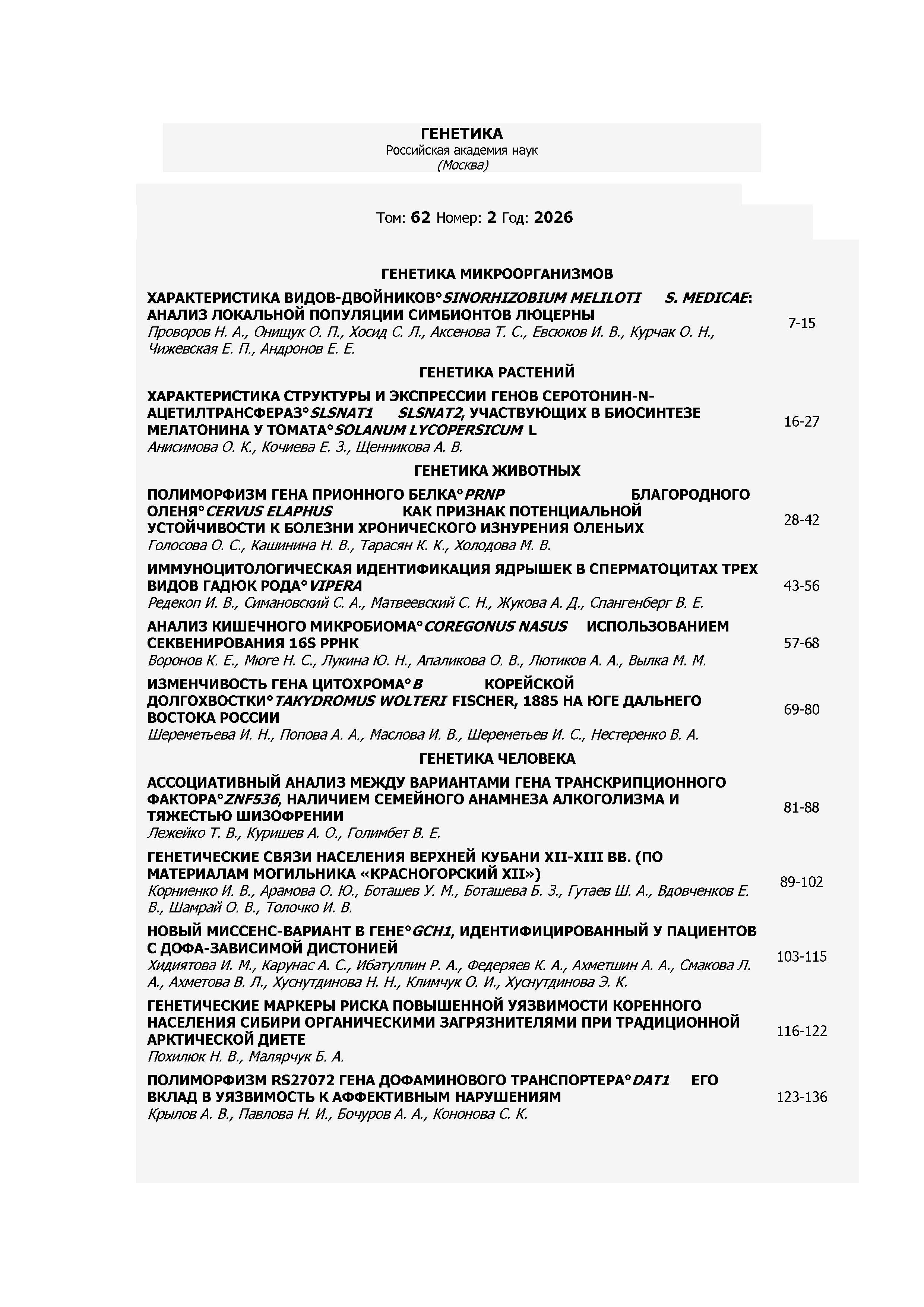 Генетика 2026 N 2 | Генетика 2026 N 2 | 2026 | 2 |