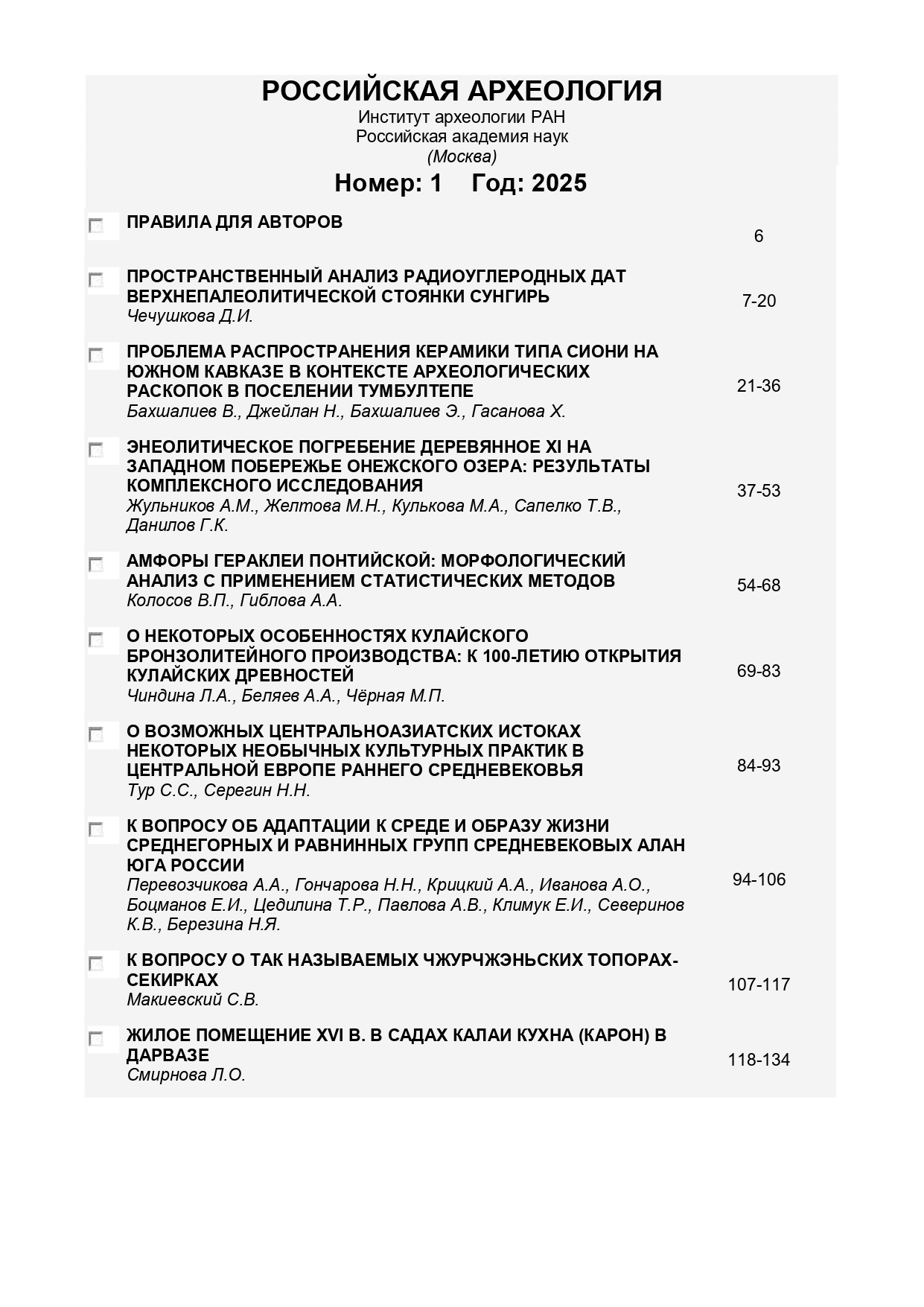 Российская археология 2025 № 1 |