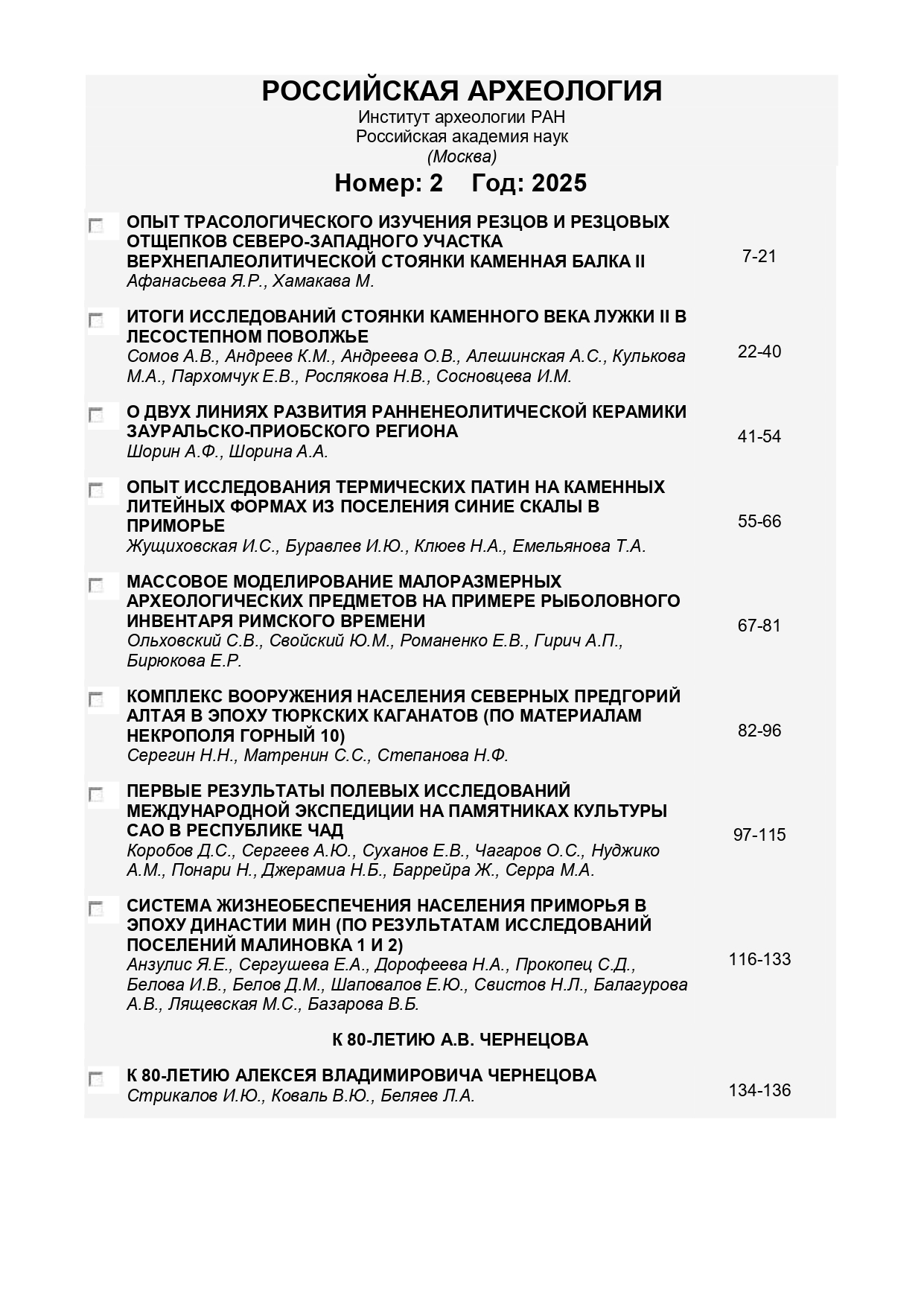 Российская археология 2025 № 2 |