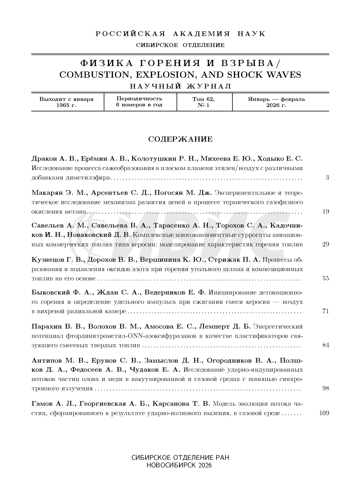 Физика горения и взрыва 2026 Т. 62 № 1 | Физика горения и взрыва 2026 Т. 62 № 1 | 2026 | 1 |