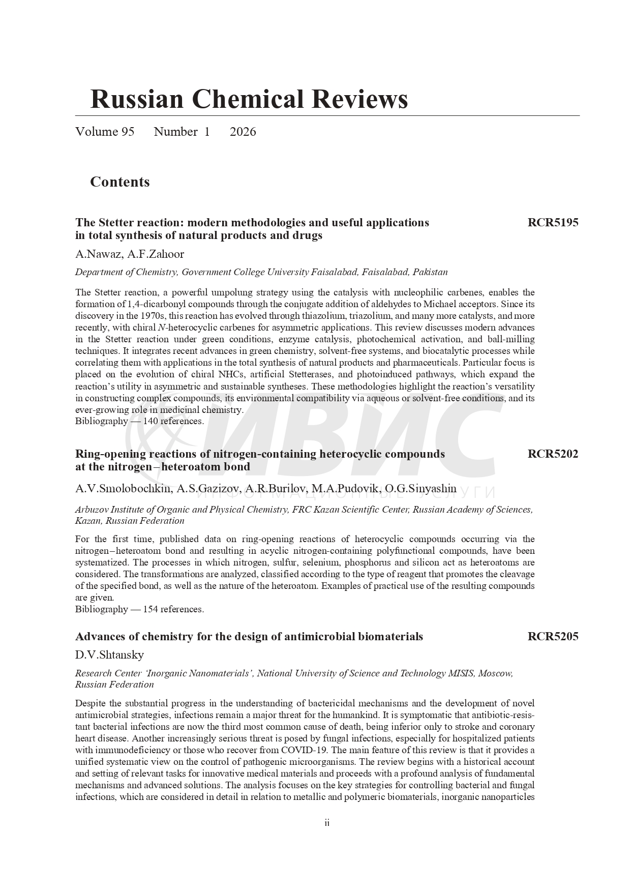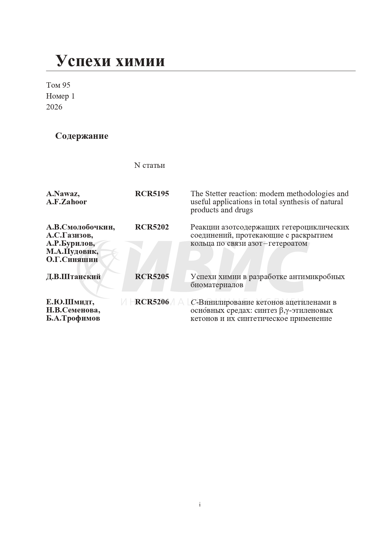 Успехи химии 2026 Т. 95 № 1 | Успехи химии 2026 Т. 95 № 1 | 2026 | 1 |