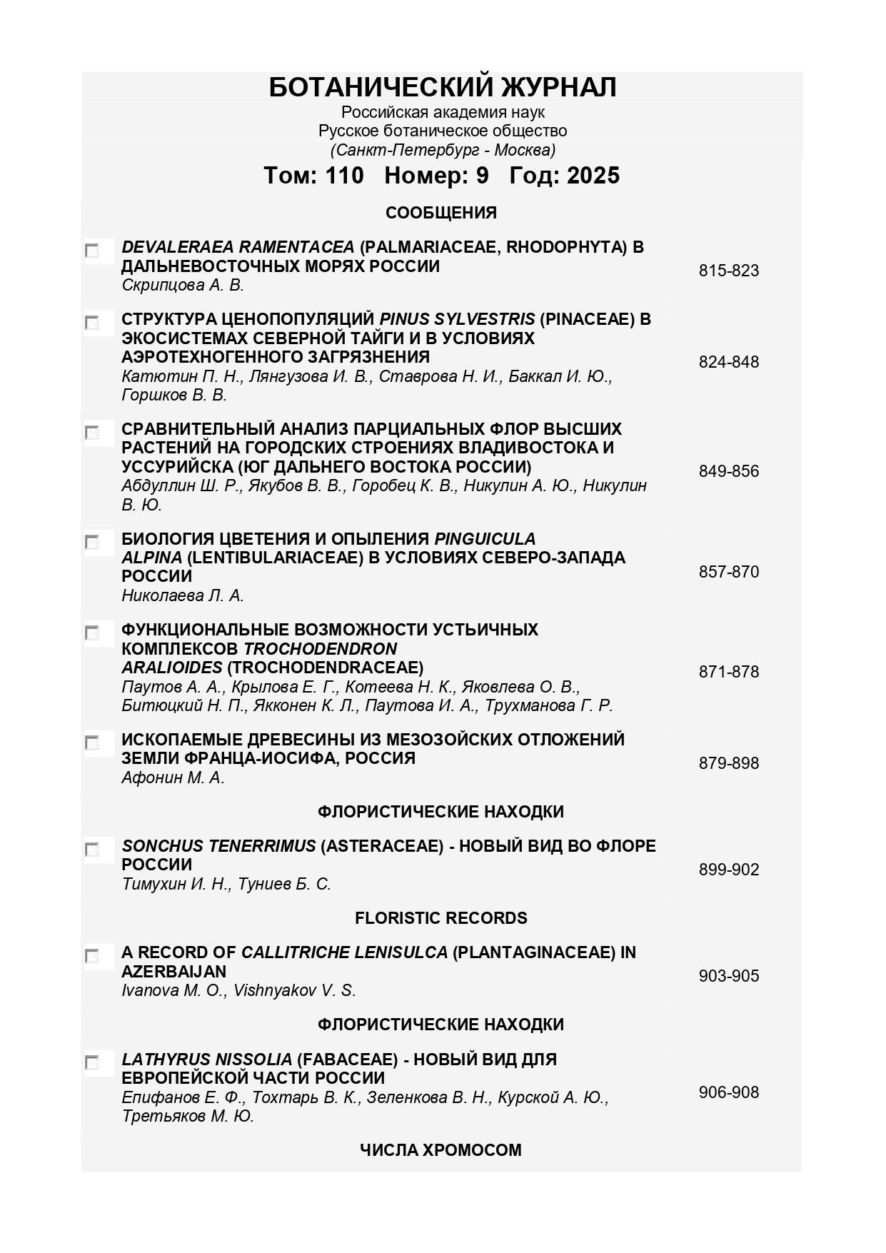 Ботанический журнал 2025 T.110 № 9 |