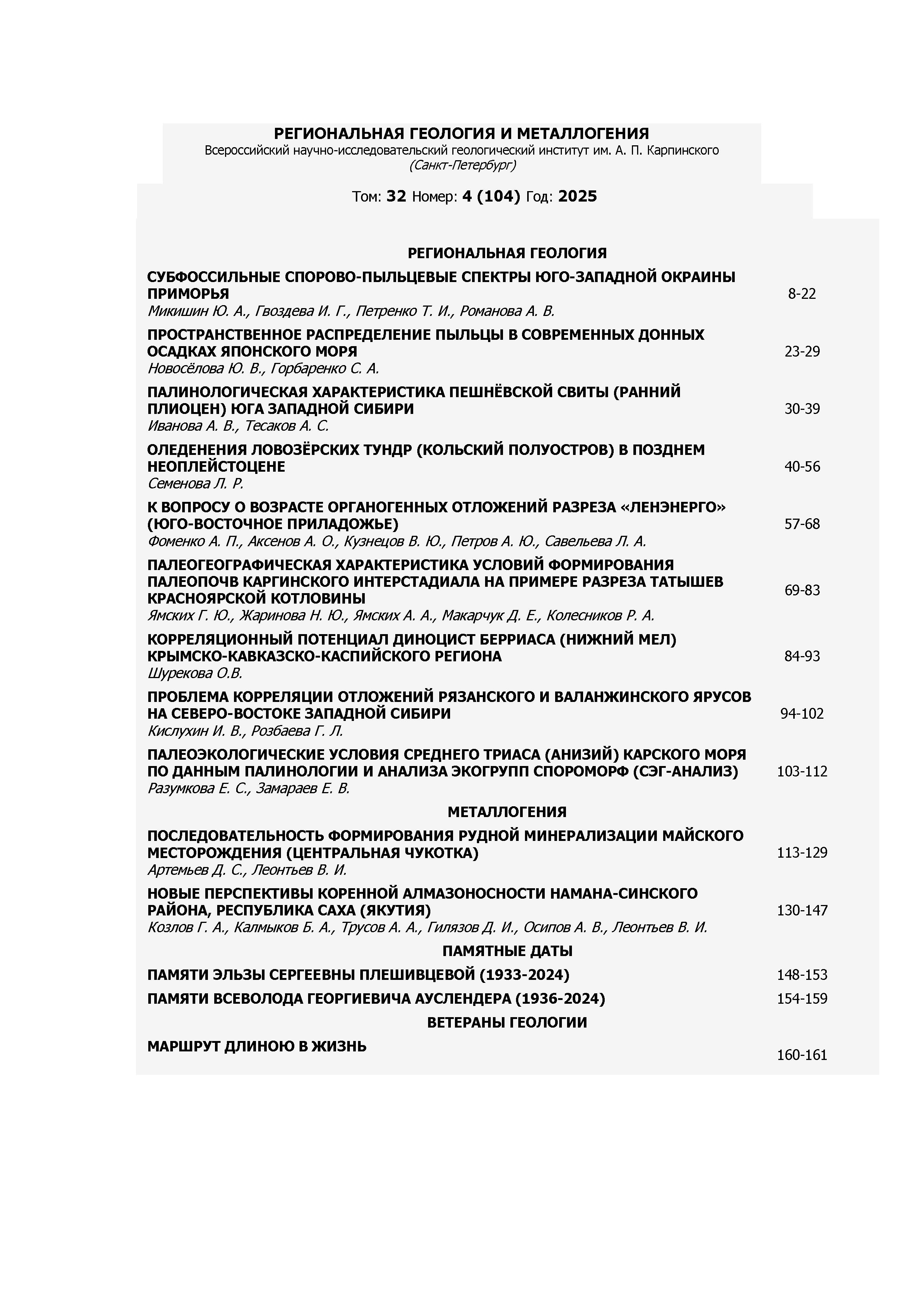 Региональная геология и металлогения 2025 N 4(104) |