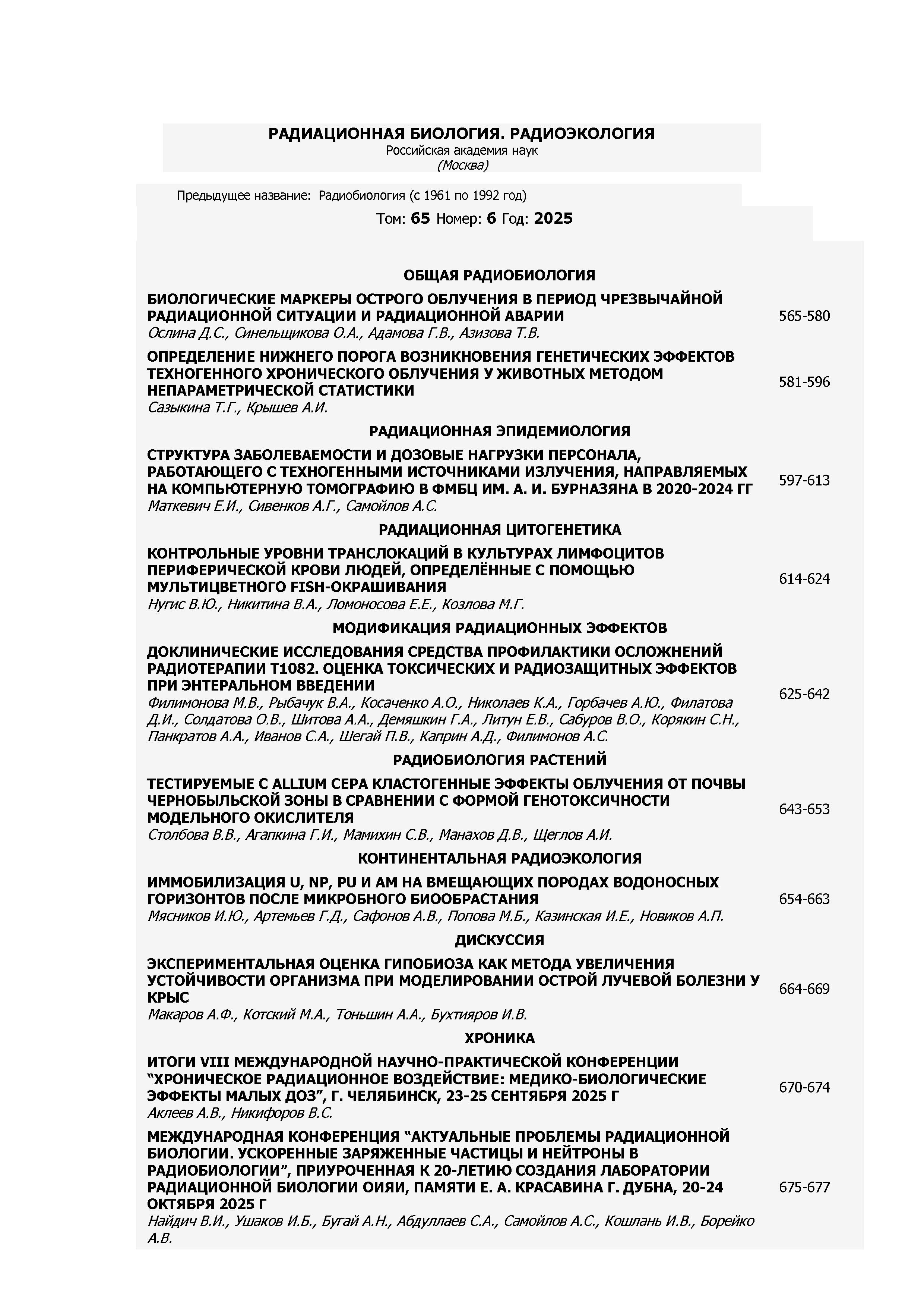Радиационная биология. Радиоэкология 2025 Т. 65 N 6 |